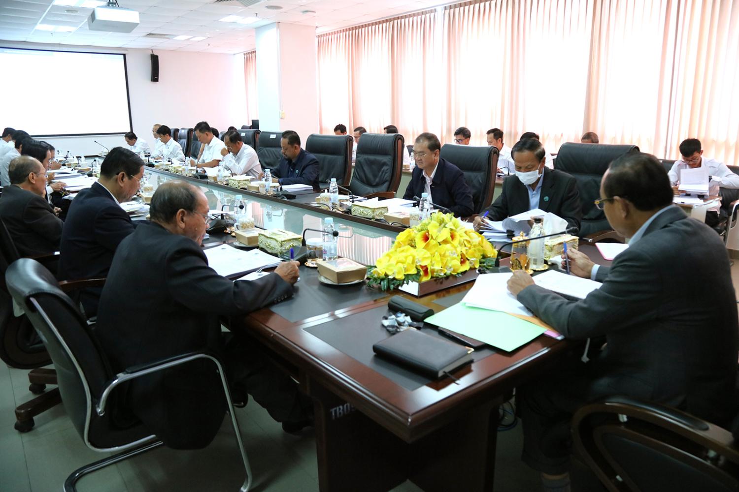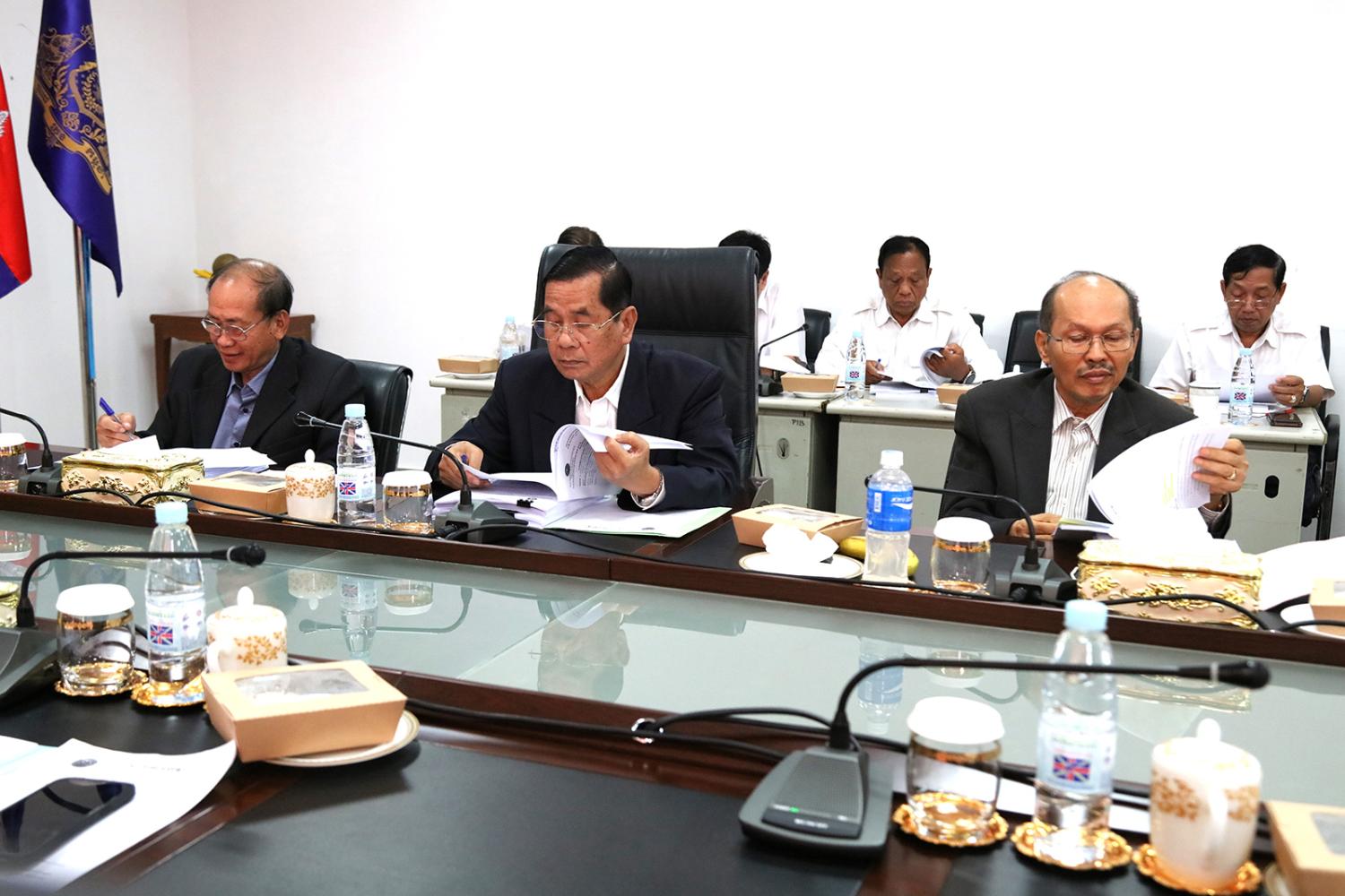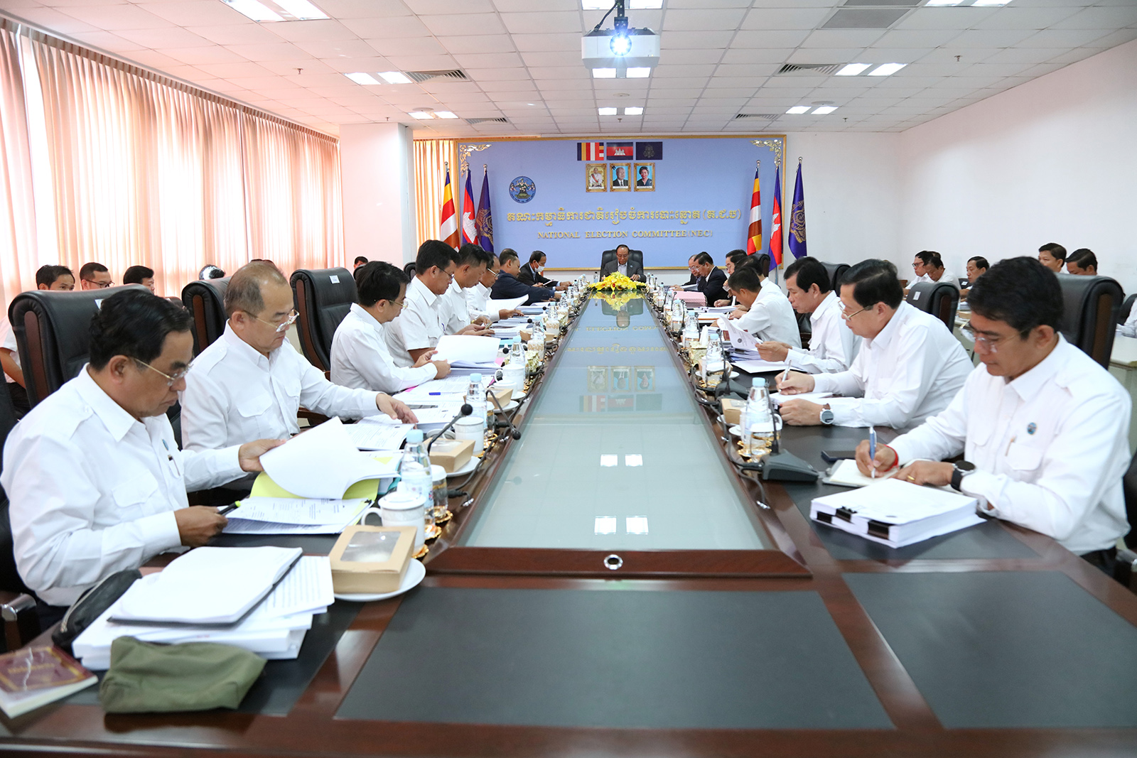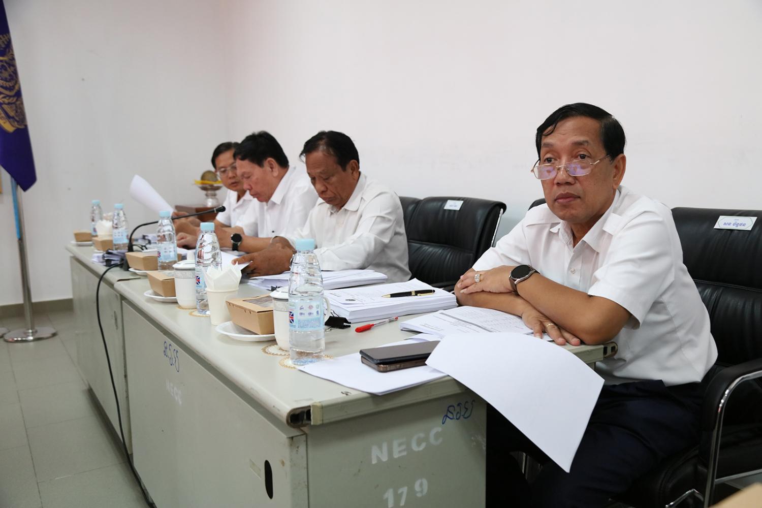 ឯកឧត្តម ប្រាជ្ញ ចន្ទ ប្រធានគណៈកម្មាធិការជាតិរៀបចំការបោះឆ្នោត (គ.ជ.ប) បានដឹកនាំកិច្ចប្រជុំ គ.ជ.ប នាព្រឹកថ្ងៃទី៤ ខែធ្នូ ឆ្នាំ២០២៣ ដើម្បីពិនិត្យ និងសម្រេចលើ៖