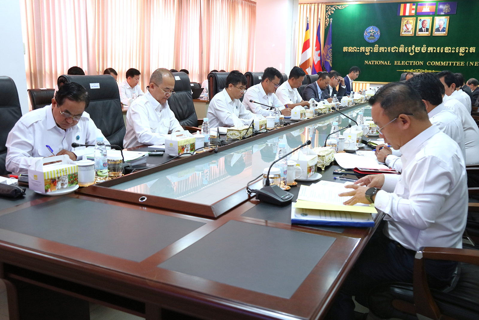 រូបភាពសកម្មភាព ឯកឧត្តម ប្រាជ្ញ ចន្ទ ប្រធានគណៈកម្មាធិការជាតិរៀបចំការបោះឆ្នោត (គ.ជ.ប) បានដឹកនាំកិច្ចប្រជុំ គ.ជ.ប នាព្រឹកថ្ងៃទី២៦ ខែធ្នូ ឆ្នាំ២០២៣ ដើម្បីពិនិត្យ និងសម្រេចលើ៖
