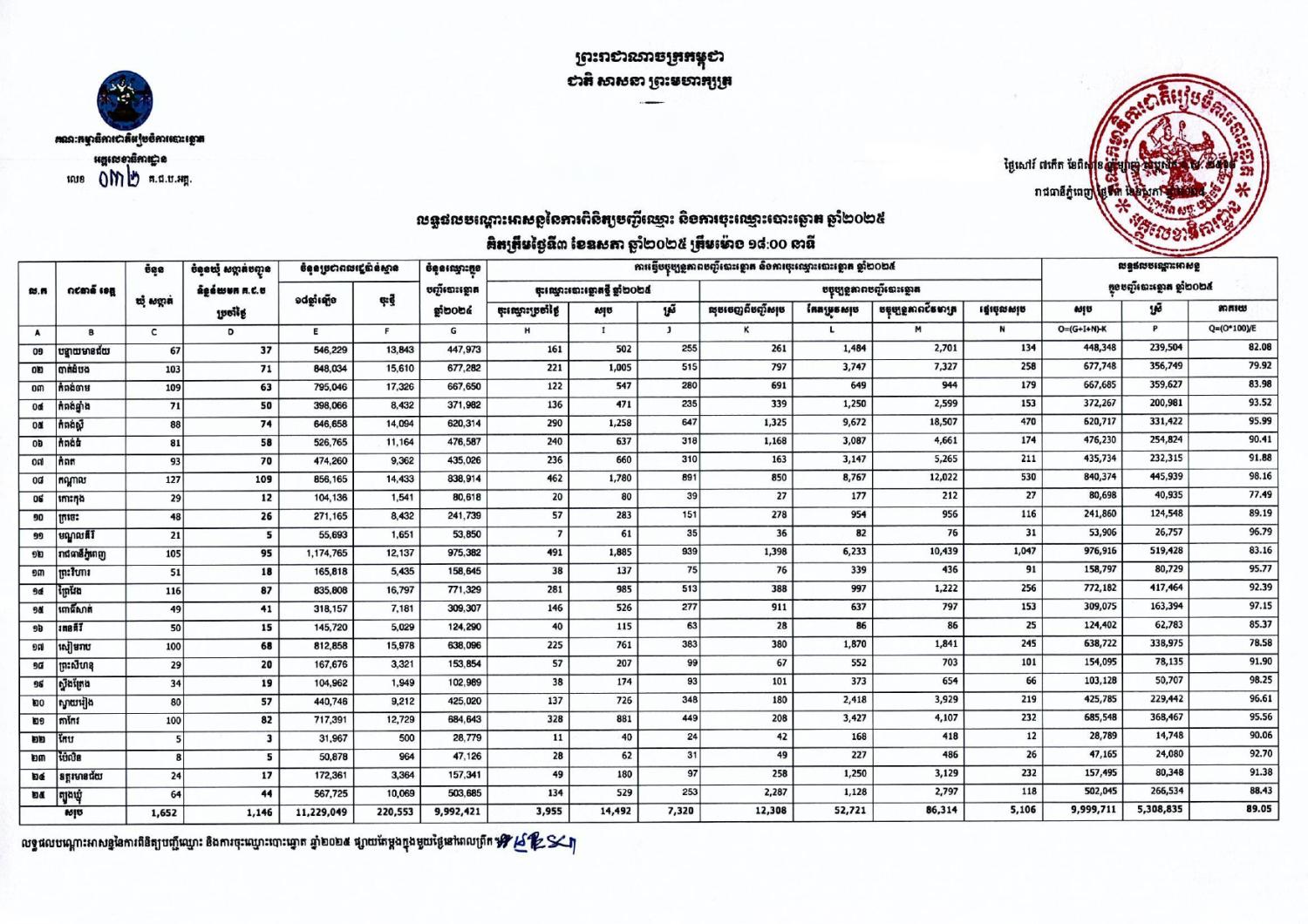 លទ្ធផលបណ្តោះអាសន្ននៃការពិនិត្យបញ្ជីឈ្មោះ និងការចុះឈ្មោះបោះឆ្នោត ឆ្នាំ២០២៥ គិតត្រឹមថ្ងៃទី៣ ខែឧសភា ឆ្នាំ២០២៥