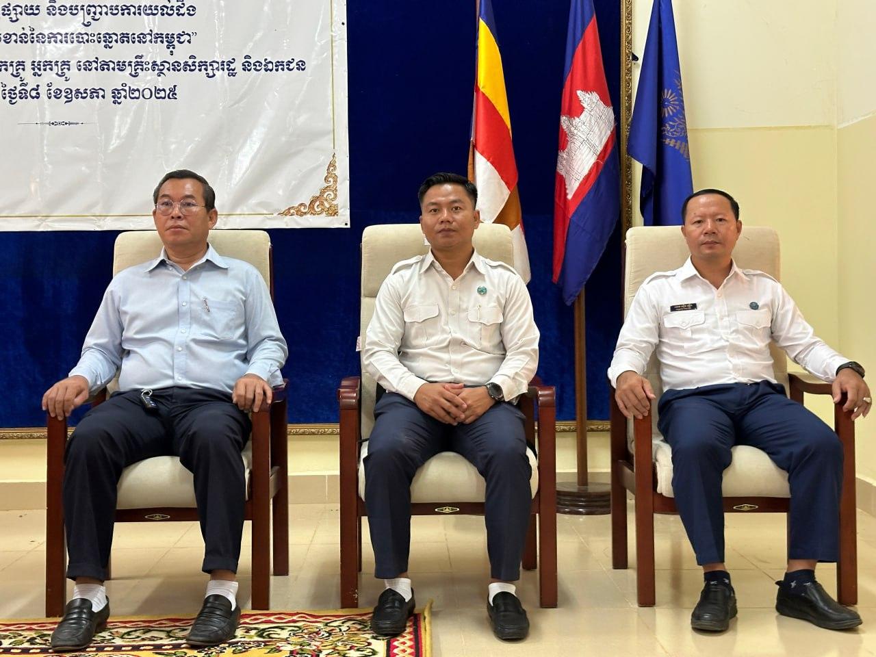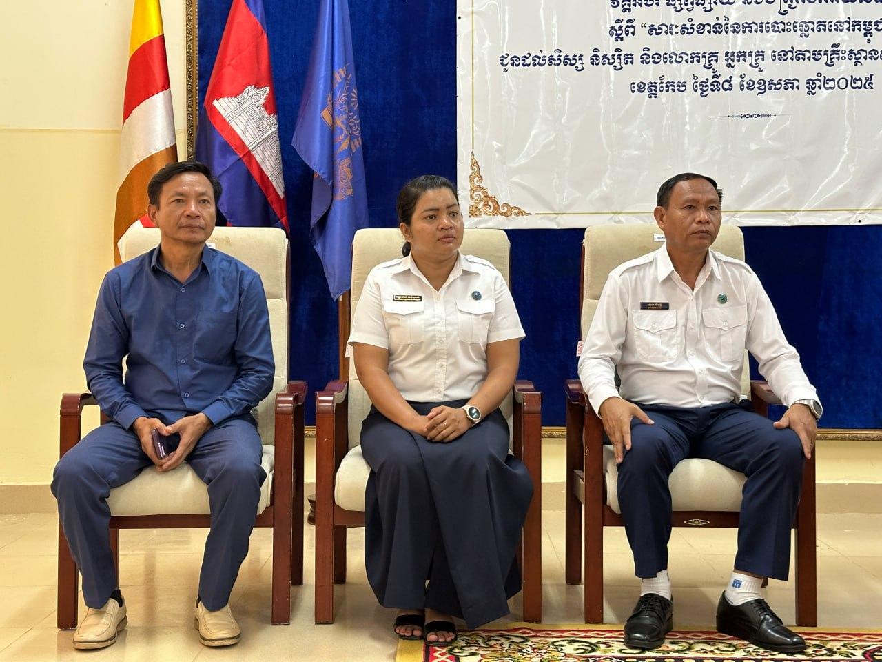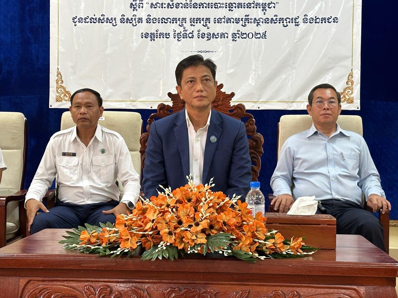 រូបភាពសកម្មភាព ឯកឧត្តម ម៉ុក ដារ៉ា អគ្គលេខាធិការរង គ.ជ.ប បានអញ្ជើញជាអធិបតីក្នុងពិធីបើកវគ្គអប់រំ ផ្សព្វផ្សាយ និងបញ្រ្ជាបការយល់ដឹង ស្តីពី "សារៈសំខាន់ នៃការបោះឆ្នោតនៅកម្ពុជា" ជូនដល់សិស្ស និស្សិត និងលោកគ្រូ អ្នកគ្រូ នៅវិទ្យាល័យហ៊ុន សែនចំការដូង ក្នុងខេត្តកែប...