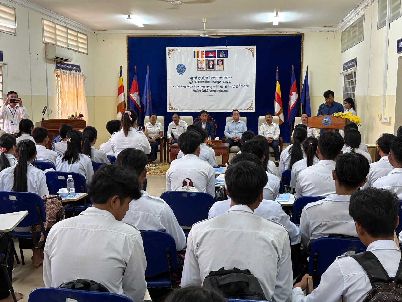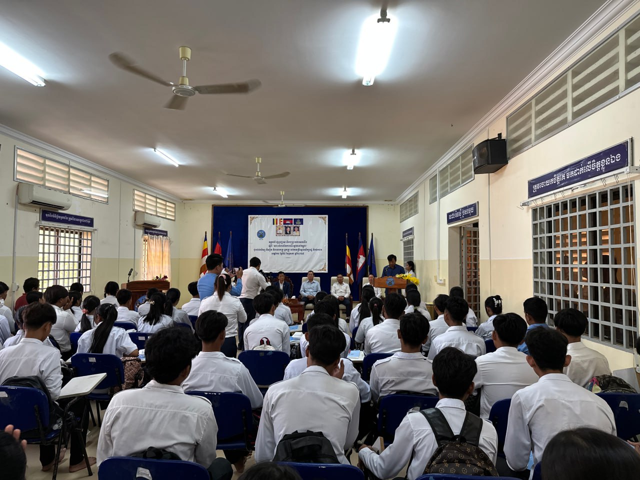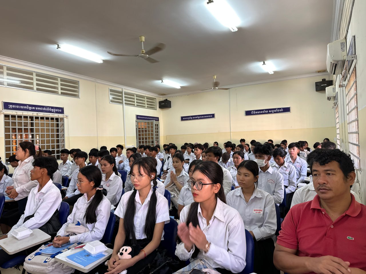 រូបភាពសកម្មភាព ឯកឧត្តម ម៉ុក ដារ៉ា អគ្គលេខាធិការរង គ.ជ.ប បានអញ្ជើញជាអធិបតីក្នុងពិធីបើកវគ្គអប់រំ ផ្សព្វផ្សាយ និងបញ្រ្ជាបការយល់ដឹង ស្តីពី "សារៈសំខាន់ នៃការបោះឆ្នោតនៅកម្ពុជា" ជូនដល់សិស្ស និស្សិត និងលោកគ្រូ អ្នកគ្រូ នៅវិទ្យាល័យហ៊ុន សែនចំការដូង ក្នុងខេត្តកែប...