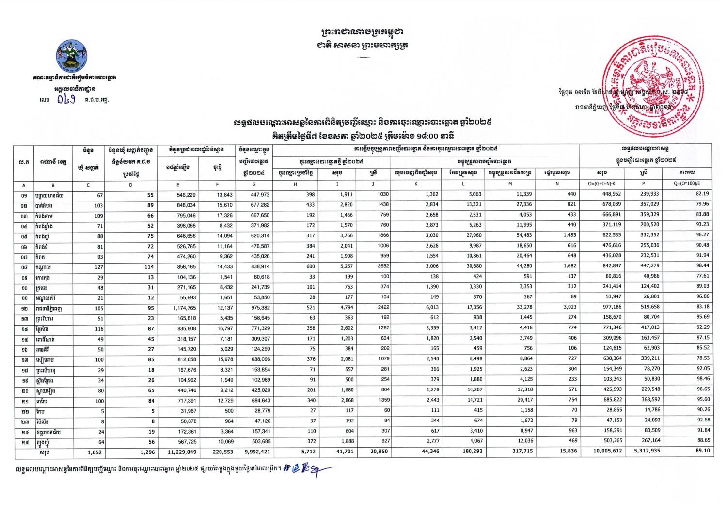 លទ្ធផលបណ្តោះអាសន្ននៃការពិនិត្យបញ្ជីឈ្មោះ និងការចុះឈ្មោះបោះឆ្នោត ឆ្នាំ២០២៥ គិតត្រឹមថ្ងៃទី៧ ខែឧសភា ឆ្នាំ២០២៥