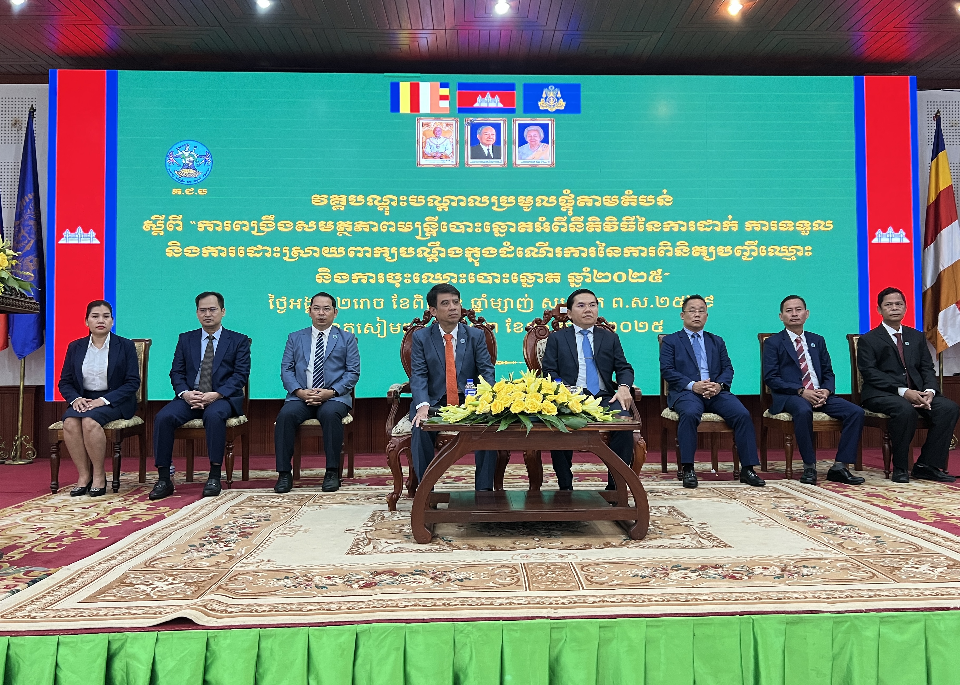ឯកឧត្តម តុប ឫទ្ធី អគ្គនាយកនៃអគ្គនាយកដ្ឋានសេវាកម្មច្បាប់ និងបច្ចេកទេស បានអញ្ជើញជាអធិបតីក្នុងពិធីបើកវគ្គបណ្ដុះបណ្ដាលប្រមូលផ្ដុំតាមតំបន់ស្ដីពី “ការពង្រឹងសមត្ថភាពមន្ត្រីបោះឆ្នោតអំពីការដាក់ ការទទួល និងការដោះស្រាយពាក្យបណ្ដឹងក្នុងដំណើការនៃការពិនិត្យបញ្ជីឈ្មោះ និងការចុះឈ្មោះបោះឆ្នោត ឆ្នាំ២០២៥” នៅសាលប្រជុំរដ្ឋបាលខេត្តសៀមរាប នាថ្ងៃទី១៣ ខែឧសភា ឆ្នាំ២០២៥