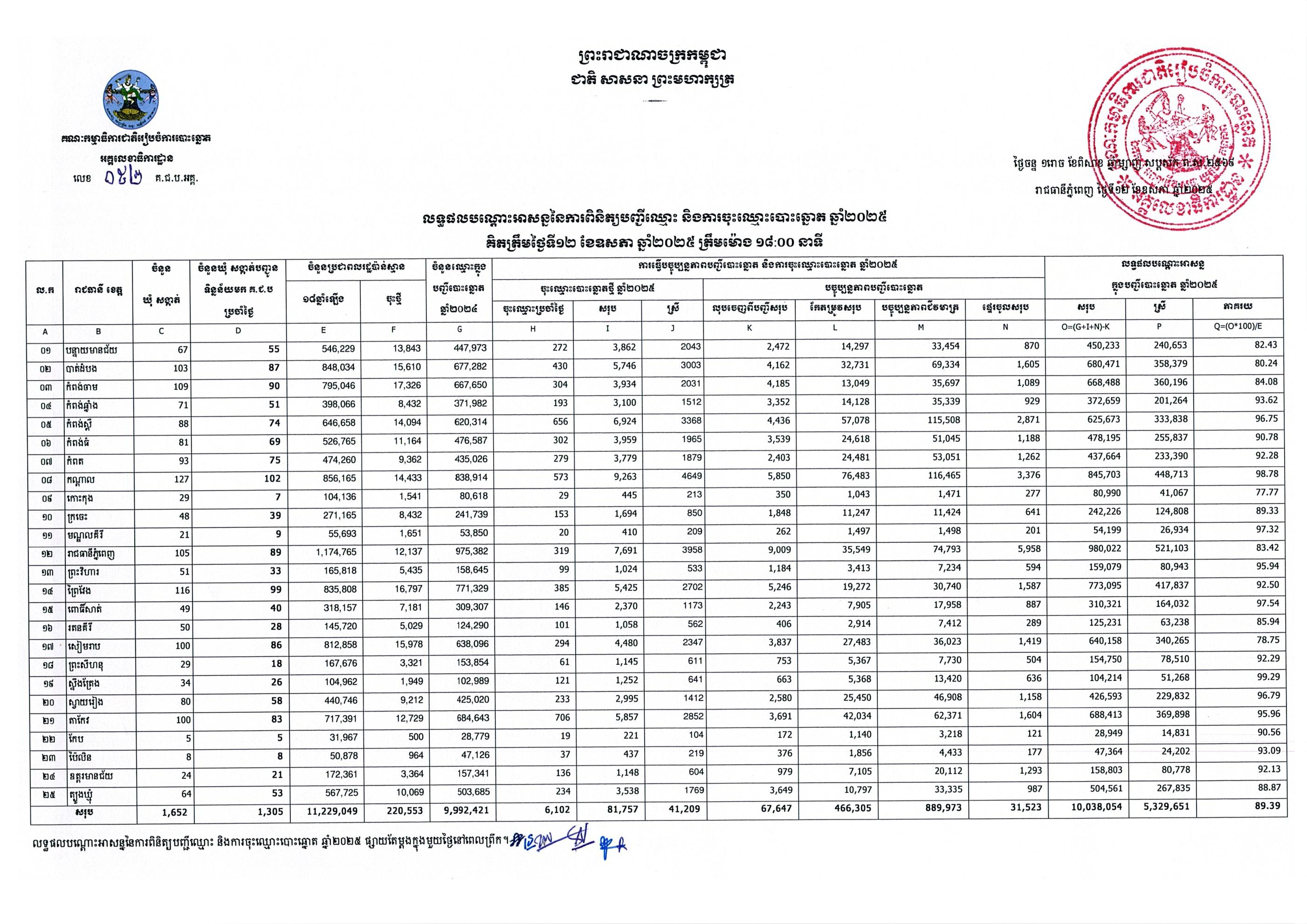 លទ្ធផលបណ្តោះអាសន្ននៃការពិនិត្យបញ្ជីឈ្មោះ និងការចុះឈ្មោះបោះឆ្នោត ឆ្នាំ២០២៥ គិតត្រឹមថ្ងៃទី១២ ខែឧសភា ឆ្នាំ២០២៥