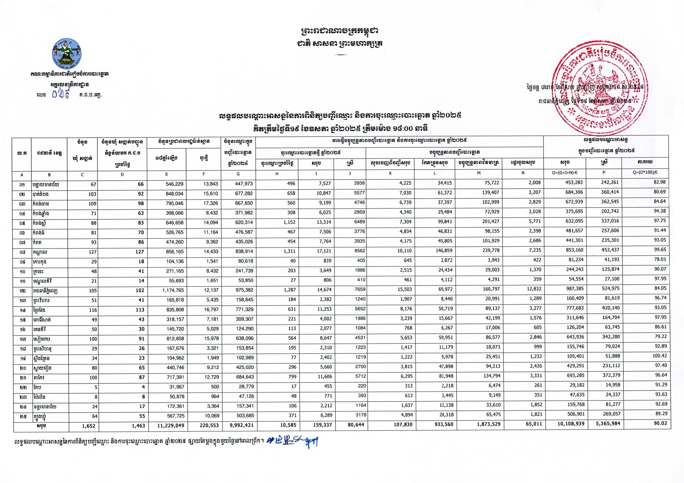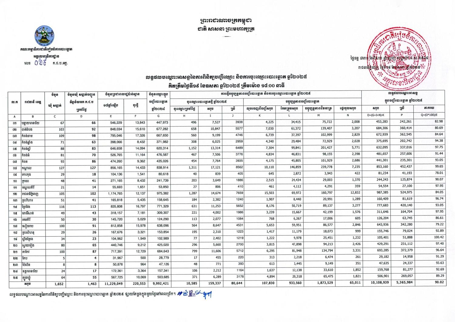 លទ្ធផលបណ្ដោះអាសន្ននៃការពិនិត្យបញ្ជីឈ្មោះ និងការចុះឈ្មោះបោះឆ្នោត ឆ្នាំ២០២៥ គិតត្រឹមថ្ងៃទី១៩ ខែឧសភា ឆ្នាំ២០២៥