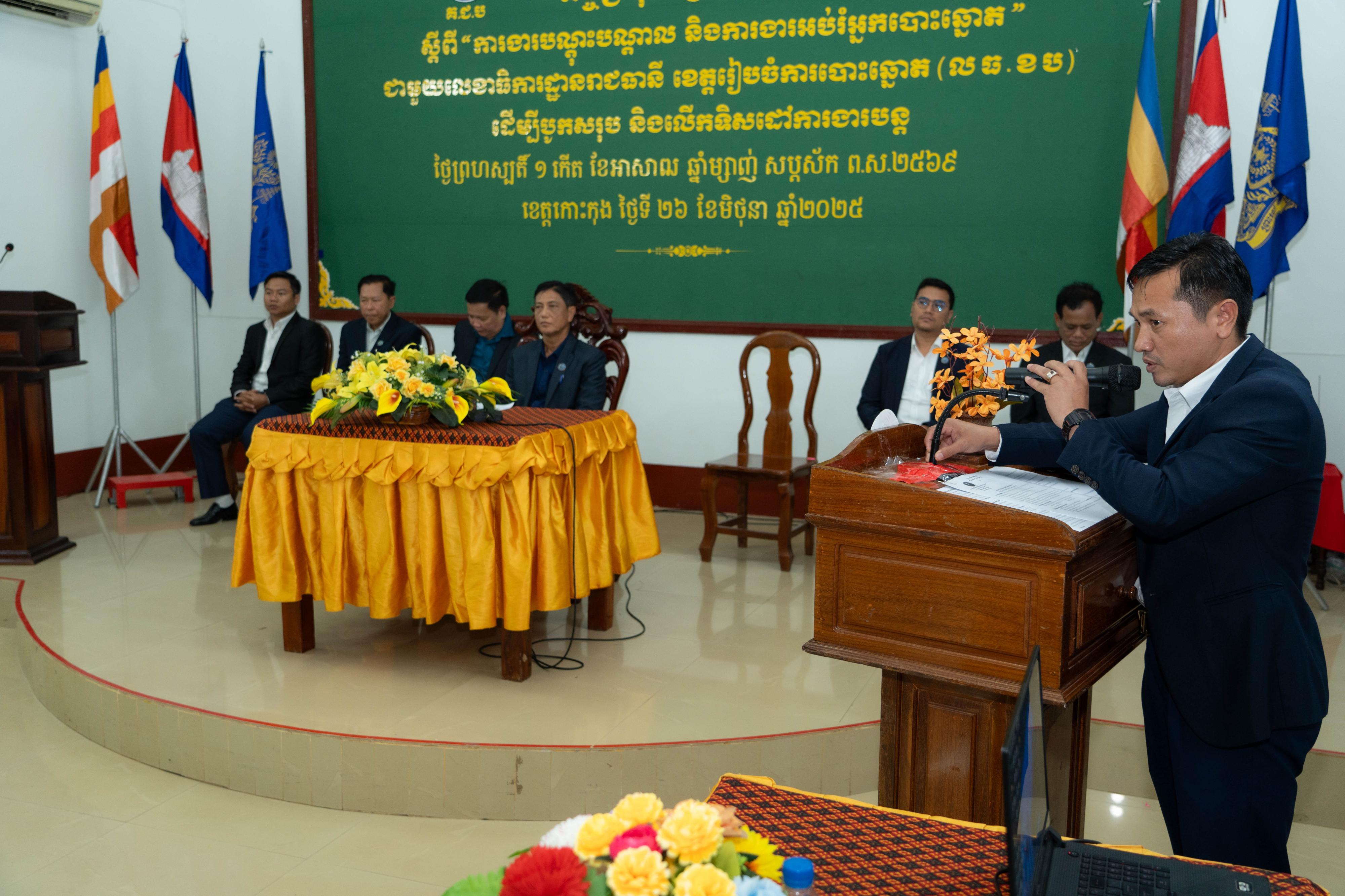 ឯកឧត្ដម ម៉ុក ដារ៉ា អគ្គលេខាធិការរង គ.ជ.ប បានអញ្ជើញជាអធិបតីភាពក្នុងពិធីបិទកិច្ចប្រជុំពិគ្រោះយោបល់ ស្ដីពី “ការងារបណ្ដុះបណ្ដាល និងការងារអប់រំអ្នកបោះឆ្នោត” ជាមួយលេខាធិការដ្ឋានរាជធានី ខេត្តរៀបចំការបោះឆ្នោត (លធ.ខប) ដើម្បីបូកសរុប និងលើកទិសដៅការងារបន្ដ នៅខេត្តកោះកុង នាថ្ងៃទី២៦ ខែមិថុនា ឆ្នាំ២០២៥