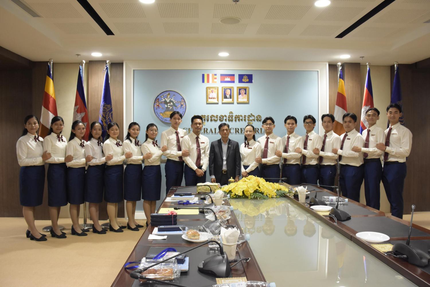 ឯកឧត្ដម ម៉ុក ដារ៉ា អគ្គលេខាធិការរង គ.ជ.ប និងថ្នាក់ដឹកនាំអគ្គនាយកដ្ឋាន នាយកដ្ឋាន និងលេខាធិការដ្ឋាននៃអគ្គលេខាធិការដ្ឋាន គ.ជ.ប បានទទួលជួបសមាគមនាវាយុវជនអាស៊ីអាគ្នេយ៍កម្ពុជា សម្រាប់ការស្វែងយល់អំពីការបោះឆ្នោតនៅកម្ពុជា នាព្រឹកថ្ងៃទី២១ ខែវិច្ឆិកា ឆ្នាំ២០២៥ នៅទីស្ដីការ គ.ជ.ប