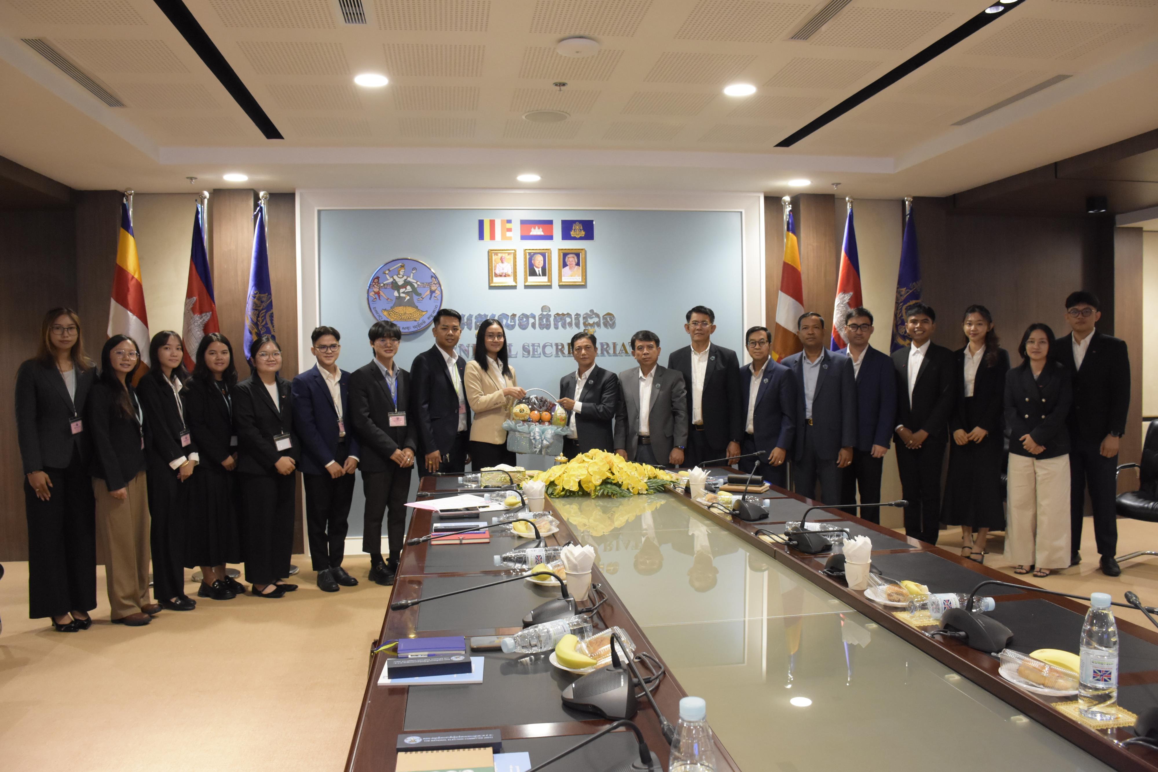 ឯកឧត្ដម ម៉ុក ដារ៉ា អគ្គលេខាធិការរង គ.ជ.ប និងថ្នាក់ដឹកនាំអគ្គនាយកដ្ឋាន នាយកដ្ឋាន និងលេខាធិការដ្ឋាននៃអគ្គលេខាធិការដ្ឋាន គ.ជ.ប បានទទួលជួបនិស្សិតជ័យលាភីអាហារូបករណ៍រដ្ឋាភិបាលនូវែលសេឡង់ ឆ្នាំសិក្សា ២០២៦-២០២៧ សម្រាប់ការផ្តល់ចំណេះដឹងបន្ថែមពាក់ព័ន្ធនឹងការបោះឆ្នោតនៅកម្ពុជា ដើម្បីអភិវឌ្ឍខ្លួនជាបន្ត មុននឹងទៅសិក្សានៅប្រទេសនូវែលសេឡង់ នាព្រឹកថ្ងៃទី១០ ខែធ្នូ ឆ្នាំ២០២៥ នៅទីស្ដីការ គ.ជ.ប