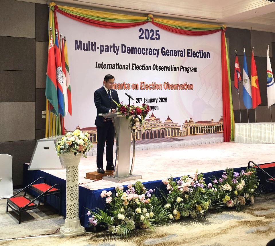 រូបភាពសកម្មភាពគណៈប្រតិភូនៃគណៈកម្មាធិការជាតិរៀបចំការបោះឆ្នោត (គ.ជ.ប) ដឹកនាំដោយ ឯកឧត្តម យិច សមិទ្ធិ សមាជិក គ.ជ.ប បានអញ្ជើញទៅចូលរួមកម្មវិធីសង្កេតការណ៍បោះឆ្នោតអន្តរជាតិ សម្រាប់ការបោះឆ្នោតសកល នៃសាធារណរដ្ឋសហភាពមីយ៉ាន់ម៉ា (ដំណាក់កាលទី៣) ចាប់ពីថ្ងៃទី២៤-២៦ ខែមករា ឆ្នាំ២០២៦