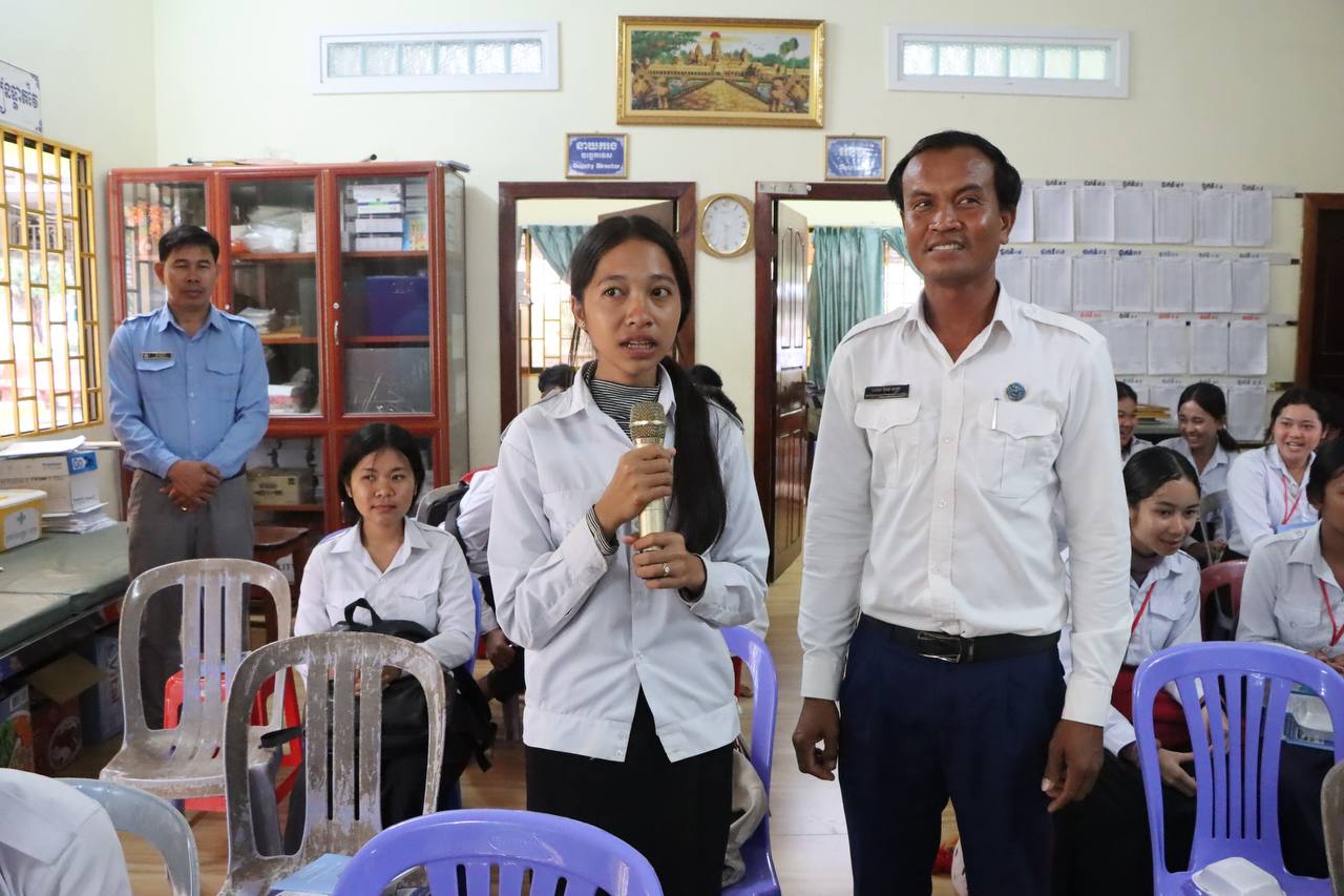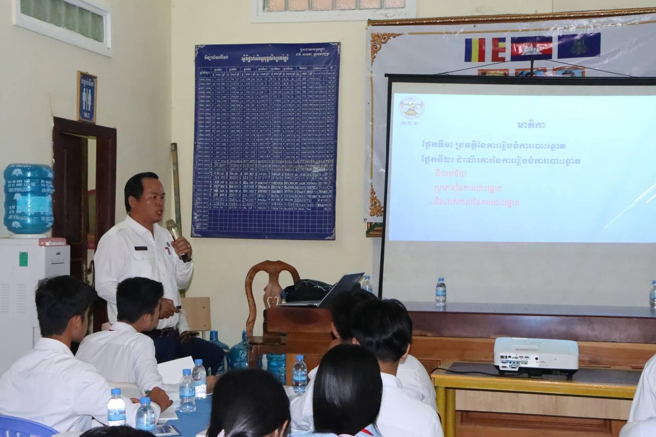 រូបភាពសកម្មភាពលេខាធិការដ្ឋានរៀបចំការបោះឆ្នោតខេត្តតាកែវ រៀបចំវគ្គអប់រំអ្នកបោះឆ្នោតបន្តស្ដីពី «សារៈសំខាន់នៃការបោះឆ្នោត» ជូនដល់សិស្សានុសិស្សថ្នាក់ទី១២ នៅវិទ្យាល័យគិរីវង់ ក្នុងខេត្តតាកែវ នាព្រឹកថ្ងៃទី៦ ខែមីនា ឆ្នាំ២០២៦