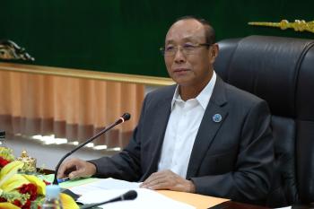 រូបភាពសកម្មភាព ឯកឧត្តម ប្រាជ្ញ ចន្ទ ប្រធាន គ.ជ.ប បានដឹកនាំកិច្ចប្រជុំផ្សព្វផ្សាយជាមួយភាគីពាក់ព័ន្ធ ស្ដីពីការសរុបព្រឹត្តិការណ៍ទូទៅនៃការបោះឆ្នោតលើកទី១ ដើម្បីជ្រើសរើសក្រុមប្រឹក្សាក្រុងកំពង់សោម នៃខេត្តព្រះសីហនុ ឆ្នាំ២០២៥
