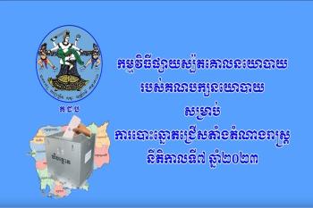 វីដេអូបទយកការណ៍ ស្តីពីការបិទផ្សាយបញ្ជីបោះឆ្នោតផ្លូវការ និងវិធីស្វែងរកឈ្មោះ ក្នុងបញ្ជីបោះឆ្នោតផ្លូវការ ឆ្នាំ២០២២ សម្រាប់ការបោះឆ្នោតជ្រើសតាំងតំណាងរាស្ត្រ នីតិកាលទី៧ ឆ្នាំ២០២៣