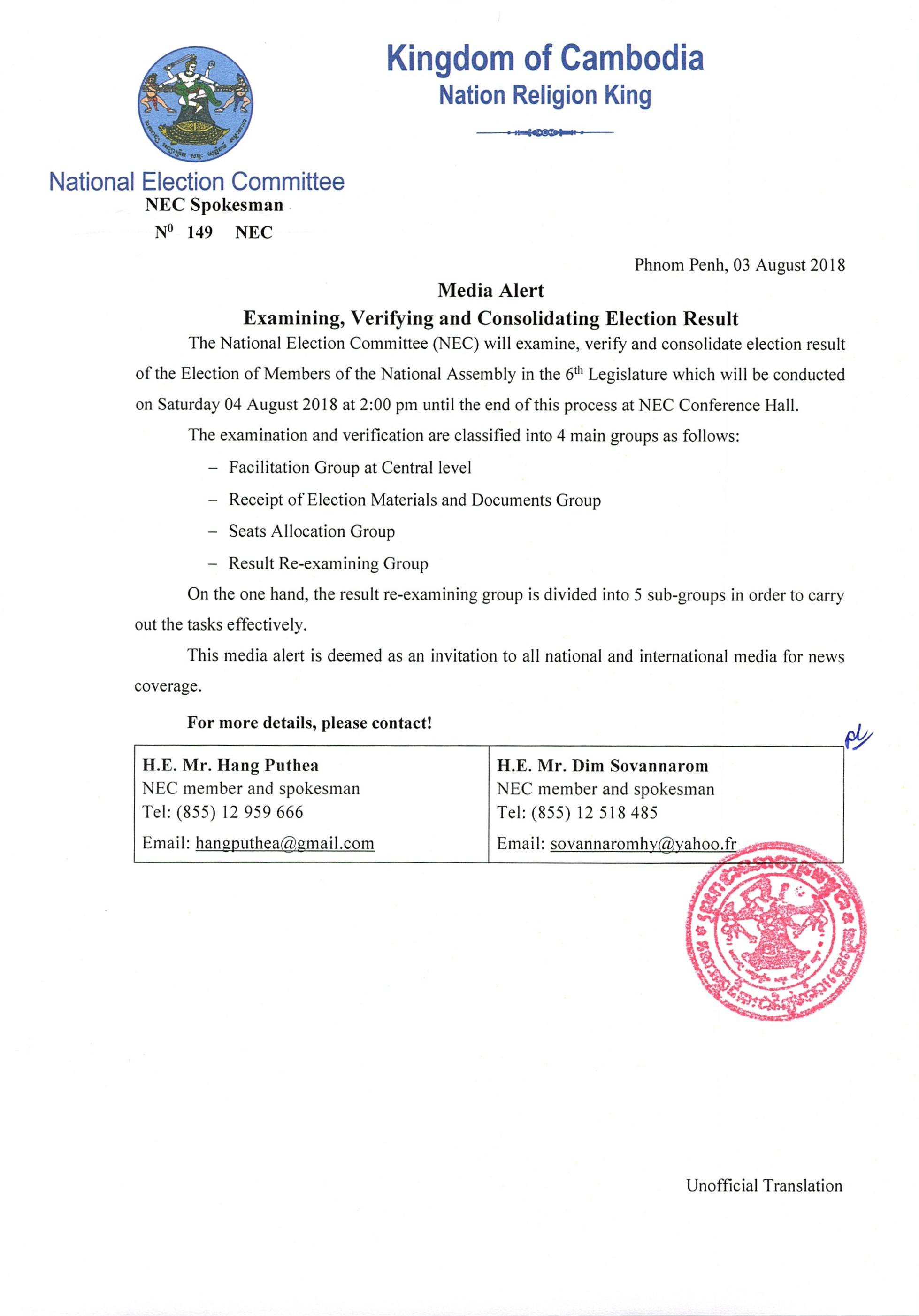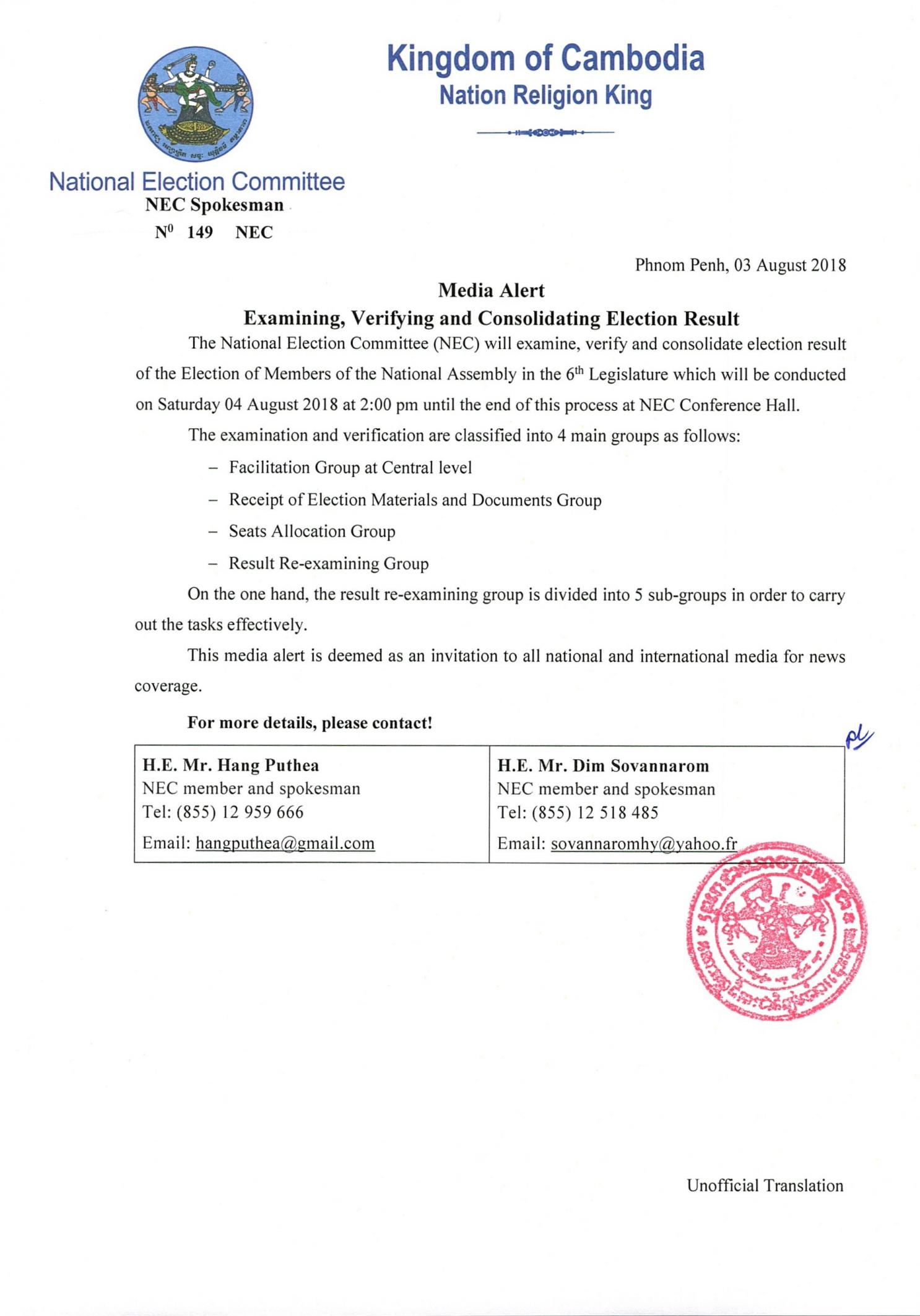 Media Alert: Examining, Verifying and Consolidating Election Result