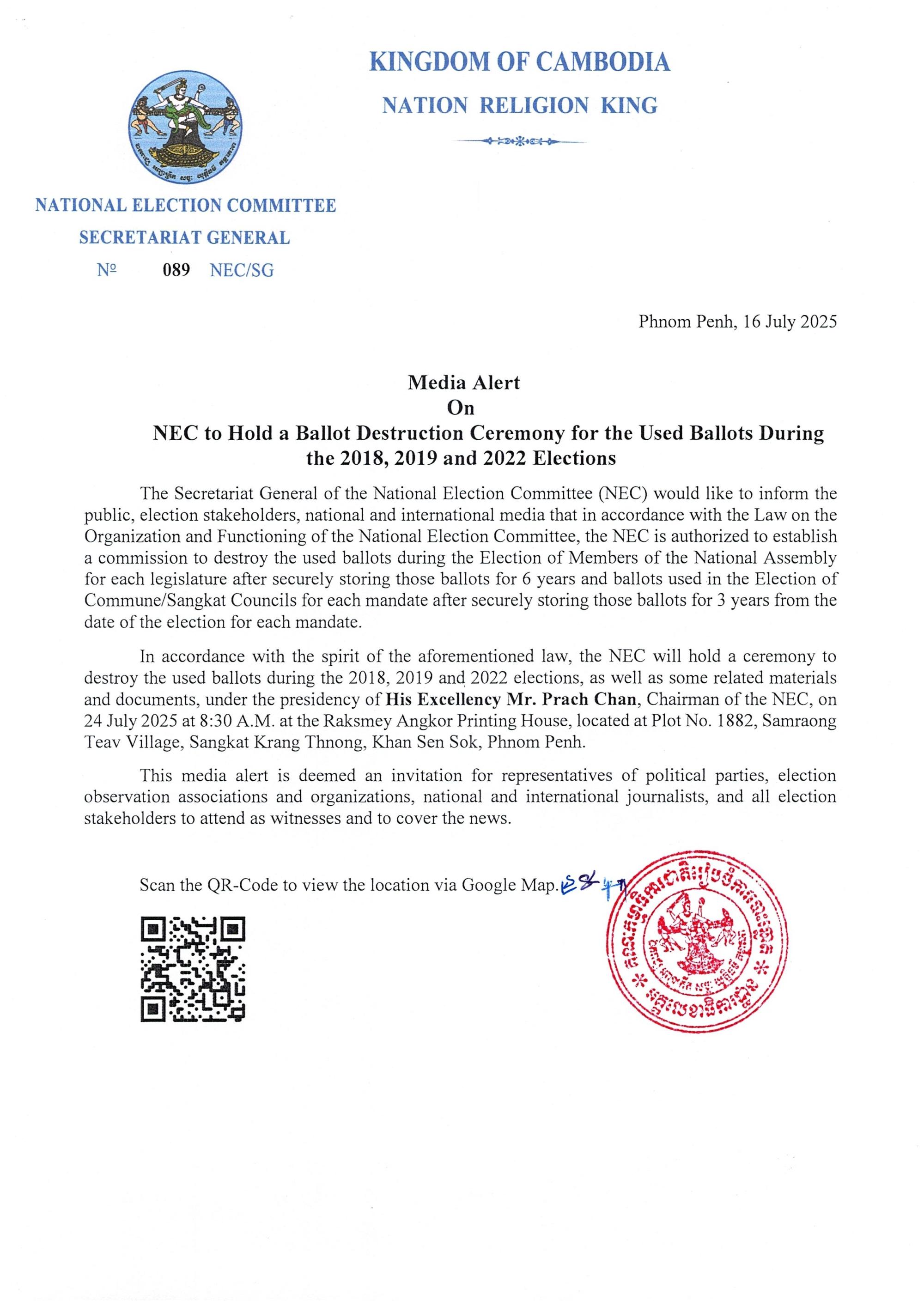 Media Alert On NEC to Hold a Ballot Destruction Ceremony for the Used Ballots During the 2018, 2019 and 2022 Elections