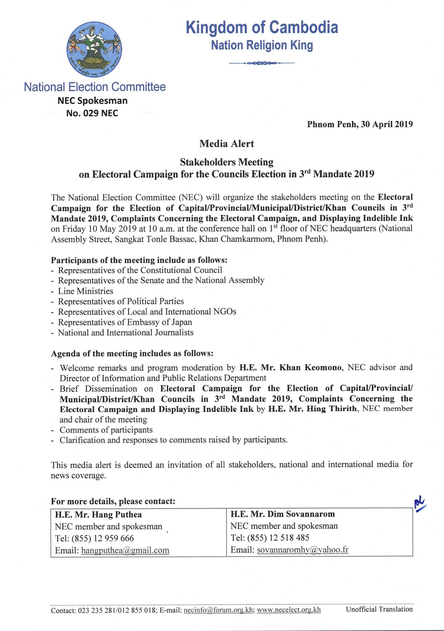 Media Alert: Stakeholders Meeting on Electoral Campaign for the Councils Election in 3rd Mandate 2019