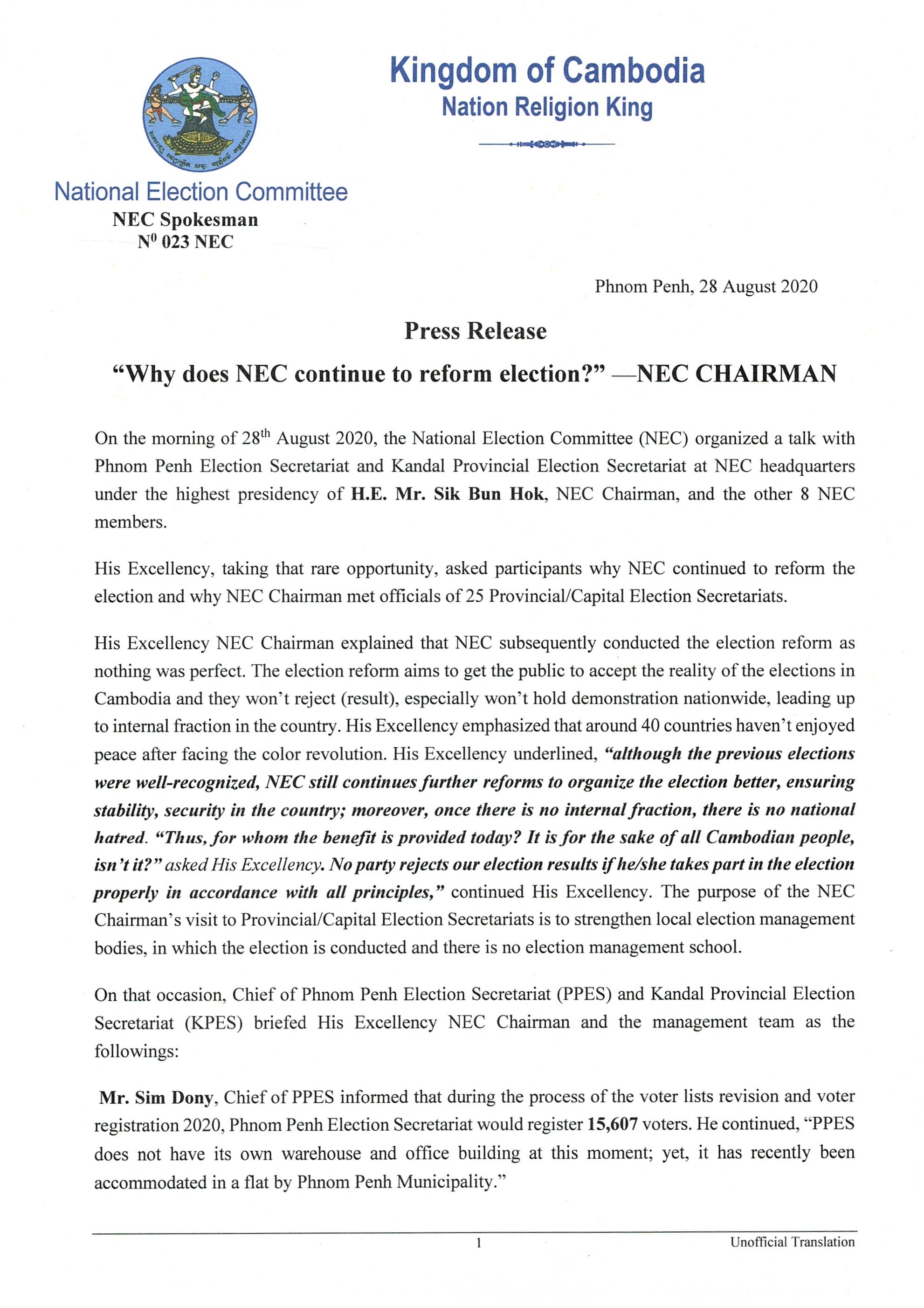 Press Release : “Why does NEC continue to reform election?” __NEC CHAIRMAN
