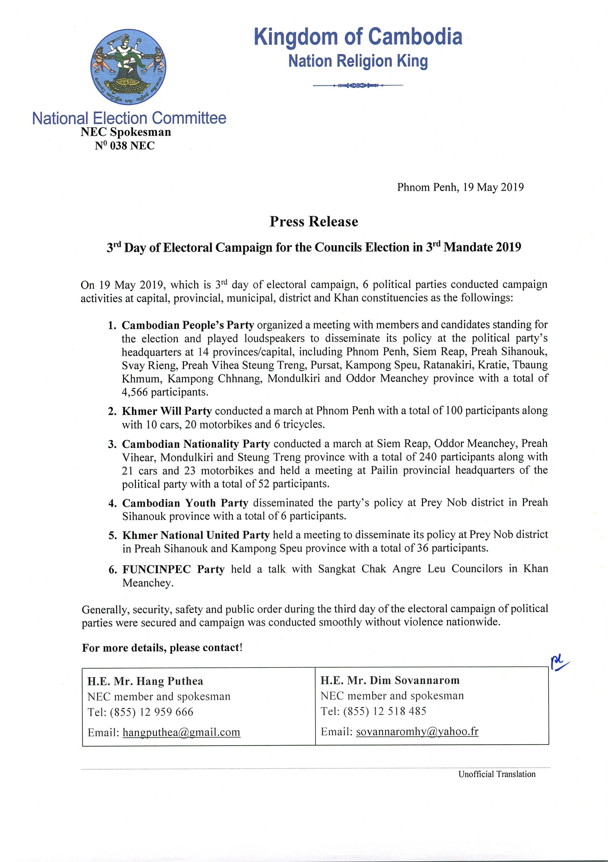 Press Release: 3rd Day of Electoral Campaign for the Councils Election in 3rd Mandate 2019