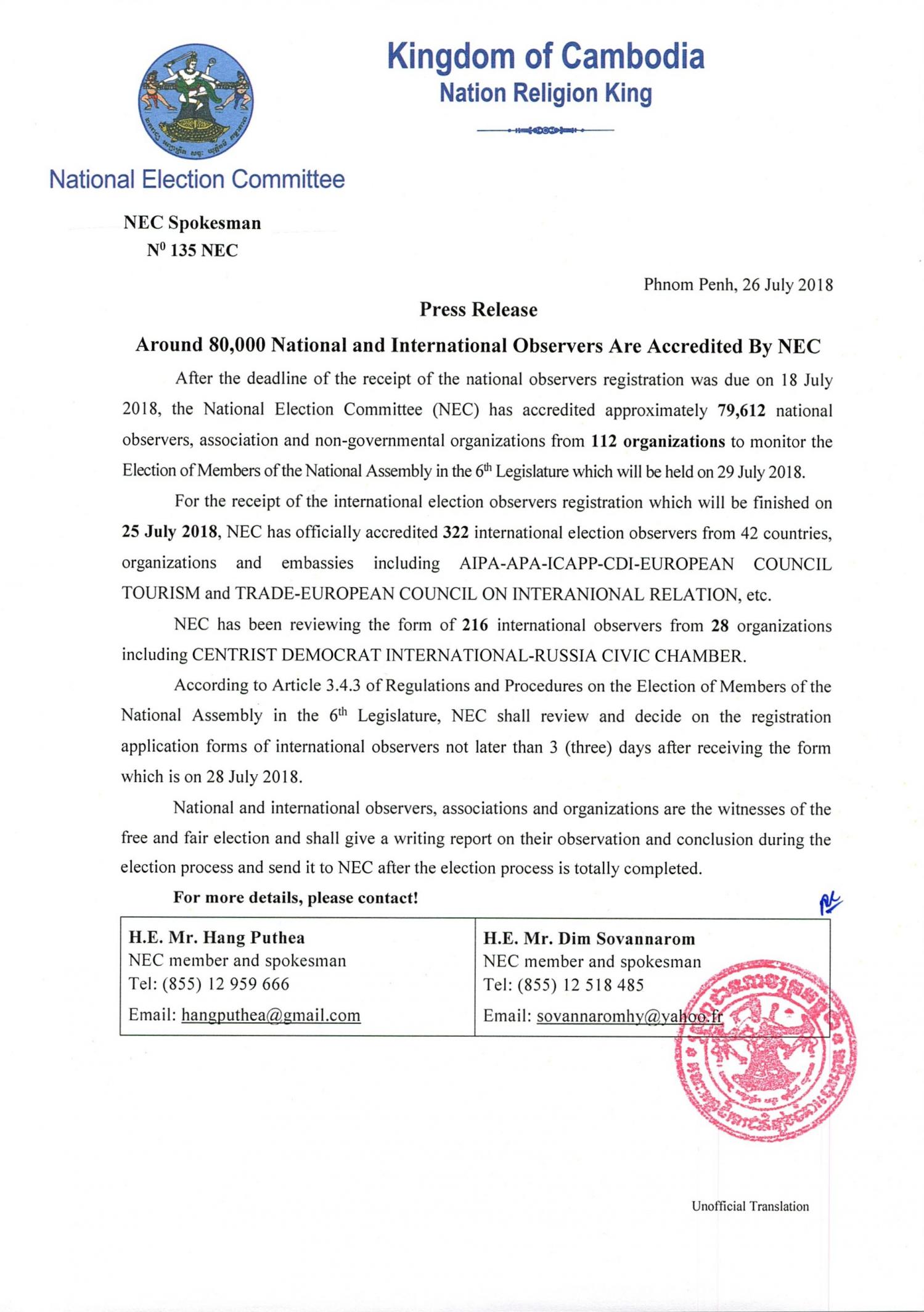 Press Release: Around 80,000 National and International Observers Are Accredited by NEC