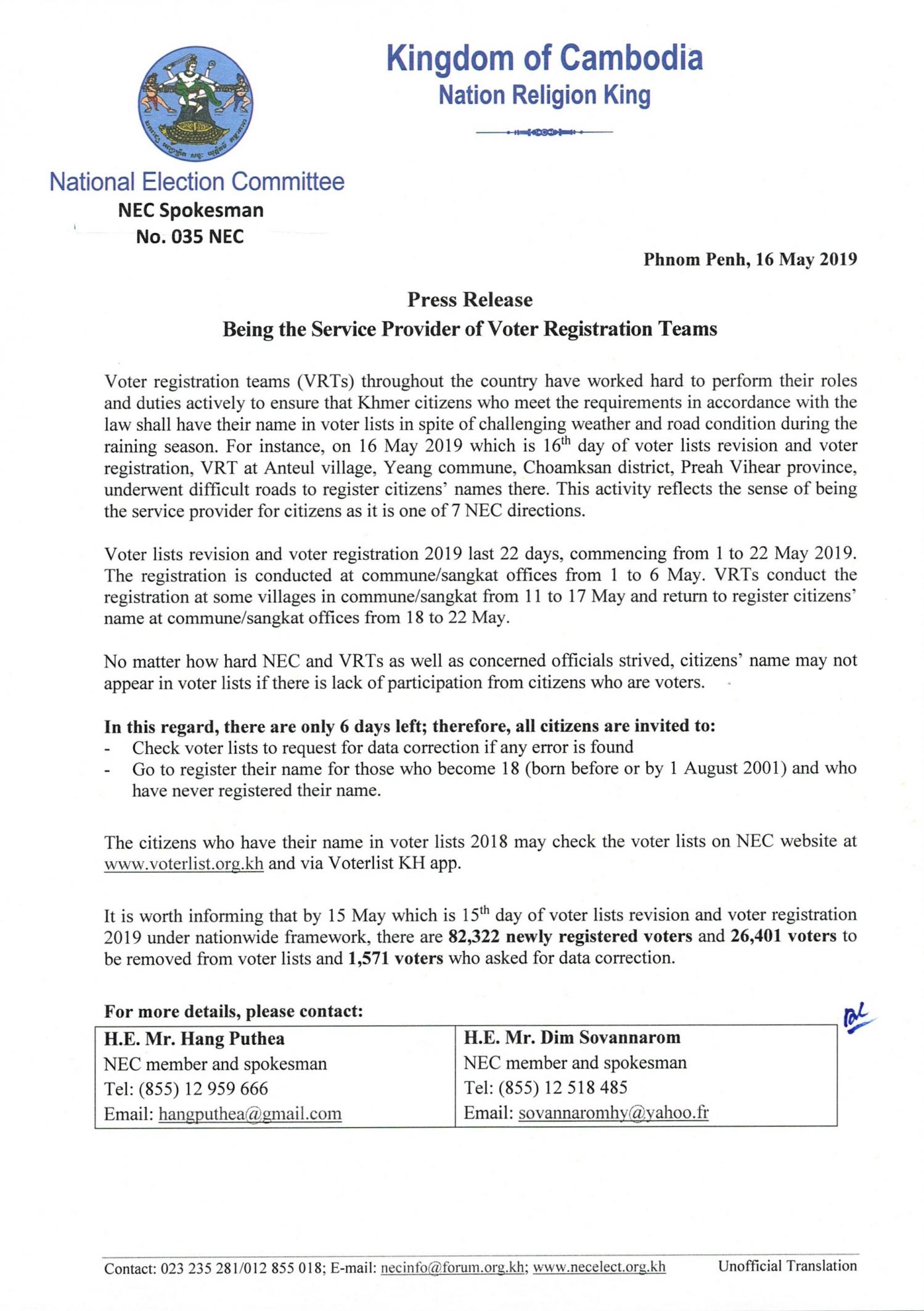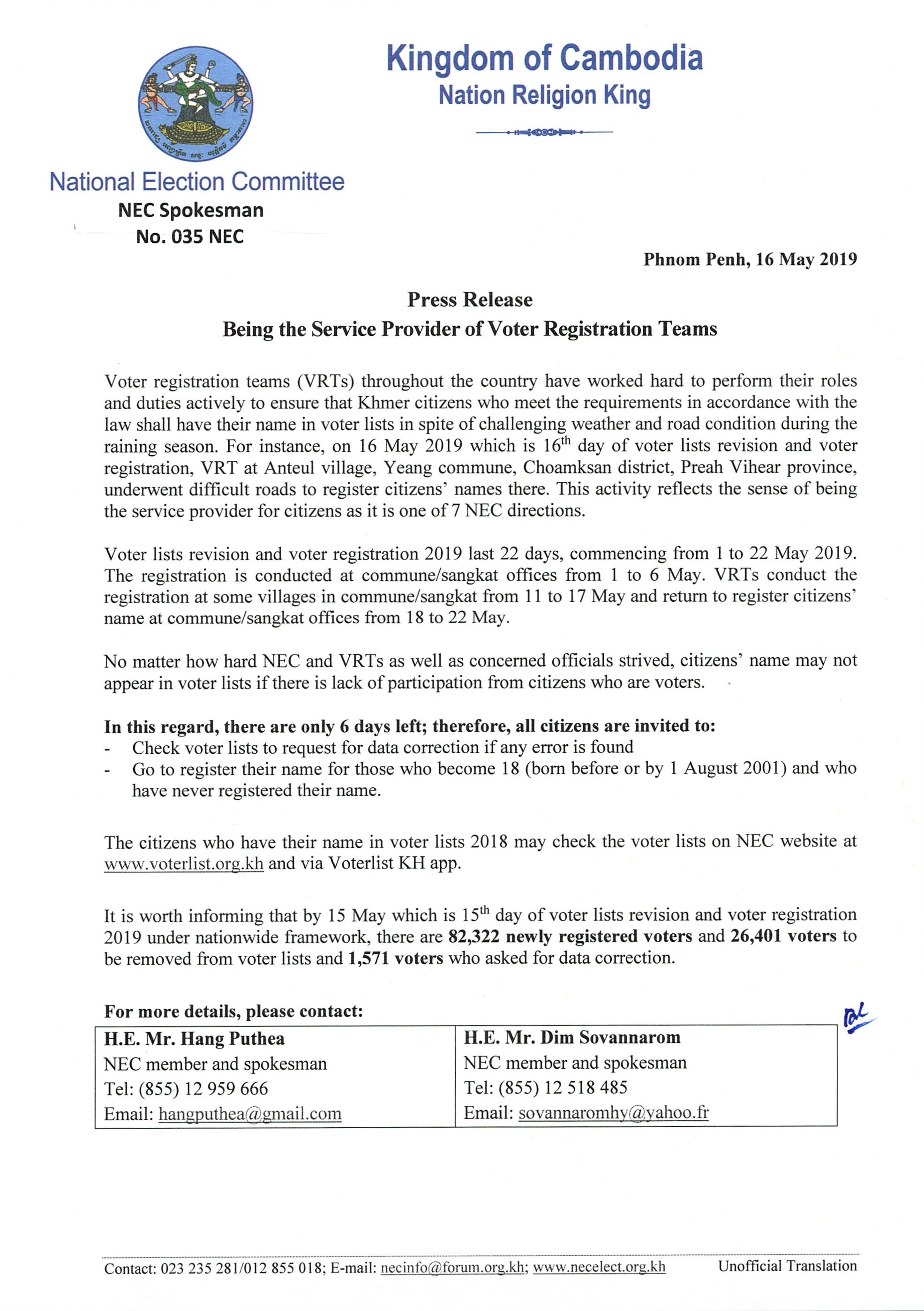 Press Release: Being the Service Provider of Voter Registration Teams
