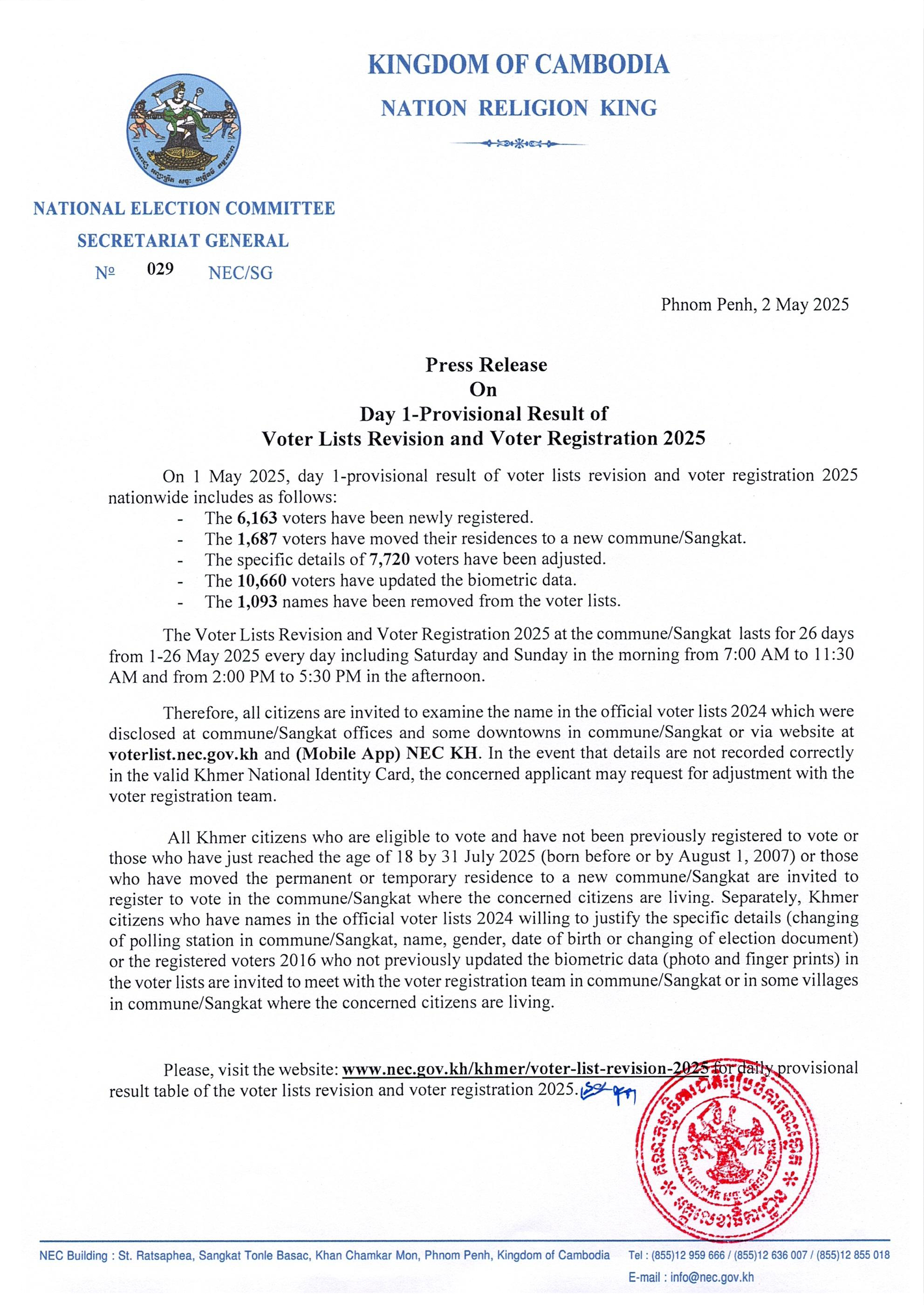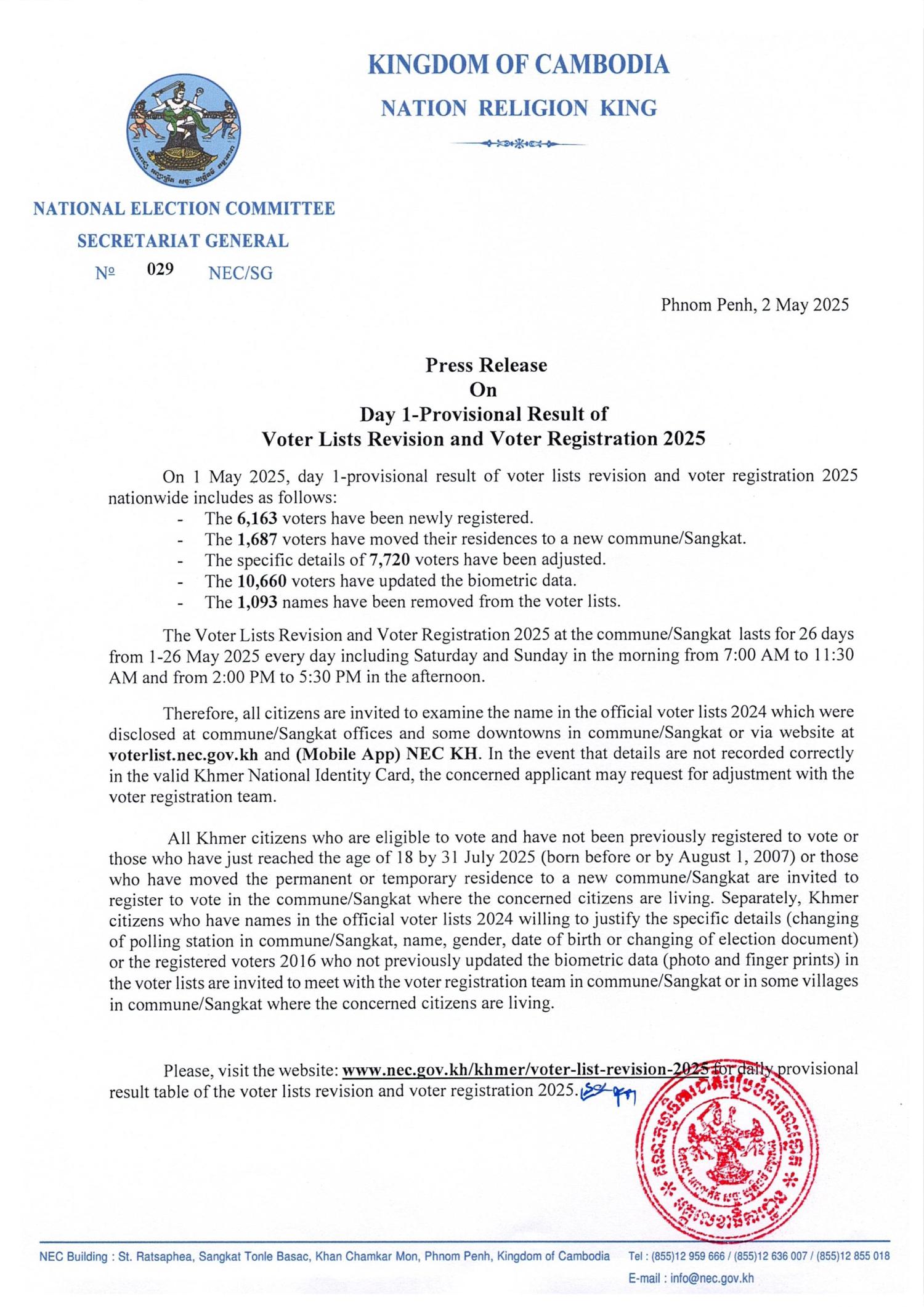 Press Release On Day 1-Provisional Result of Voter Lists Revision and Voter Registration 2025