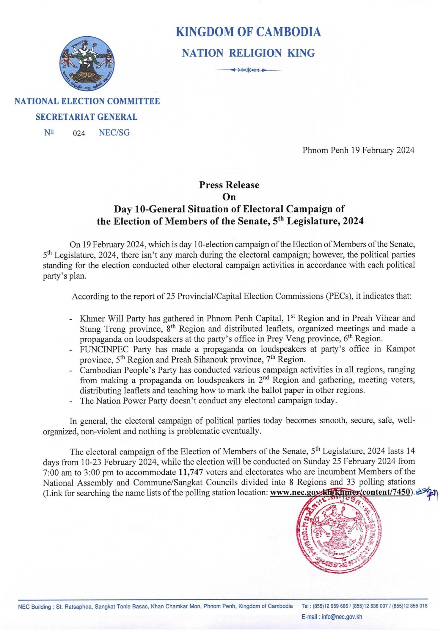 Press Release On Day 10-General Situation of Electoral Campaign of the Election of Members of the Senate, 5th Legislature, 2024