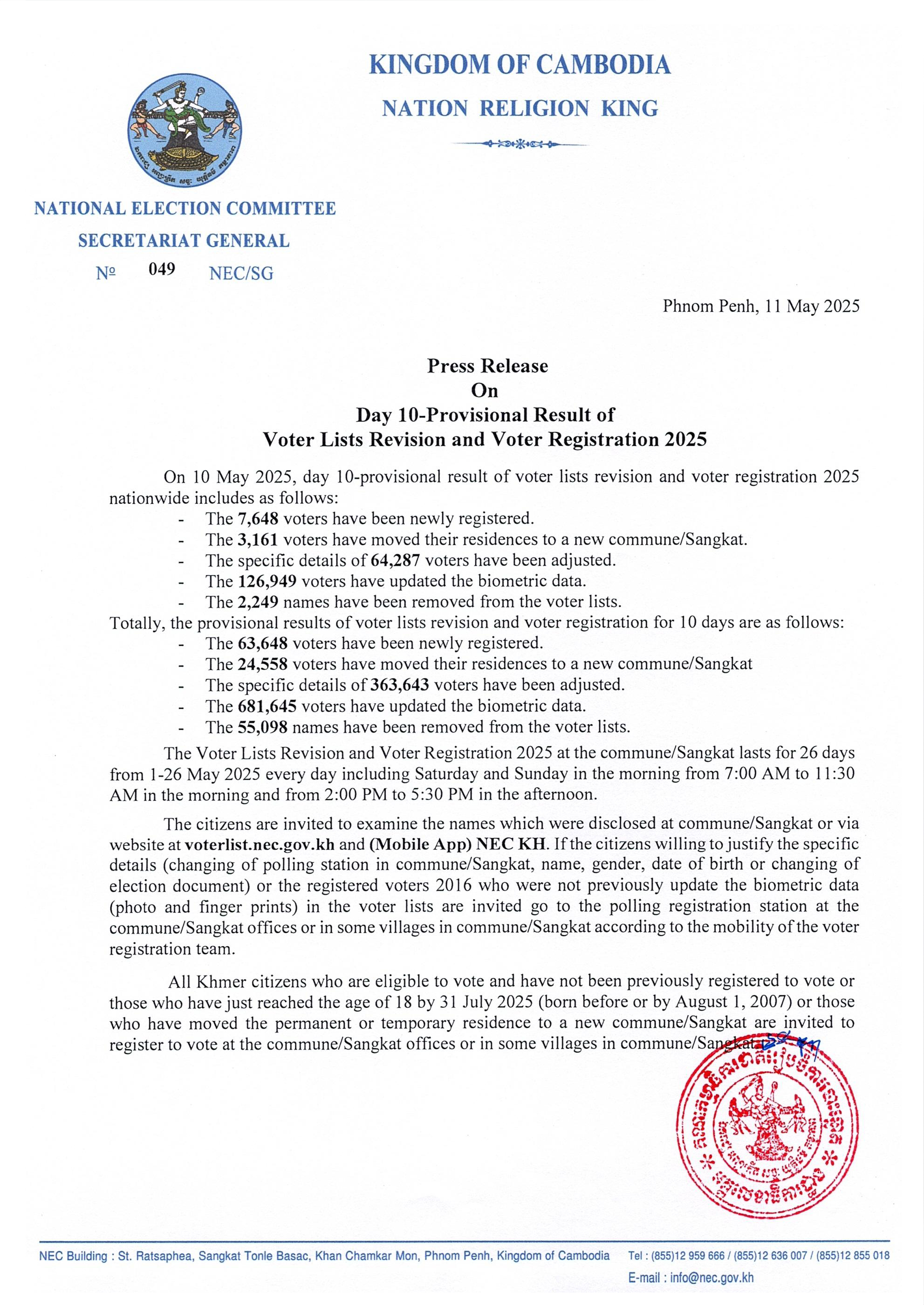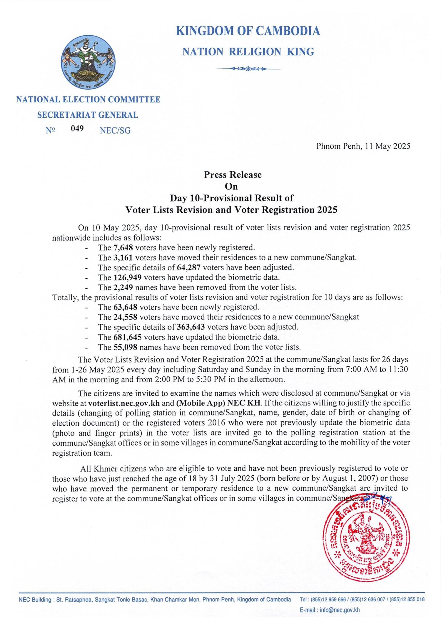Press Release On Day 10-Provisional Result of Voter Lists Revision and Voter Registration 2025