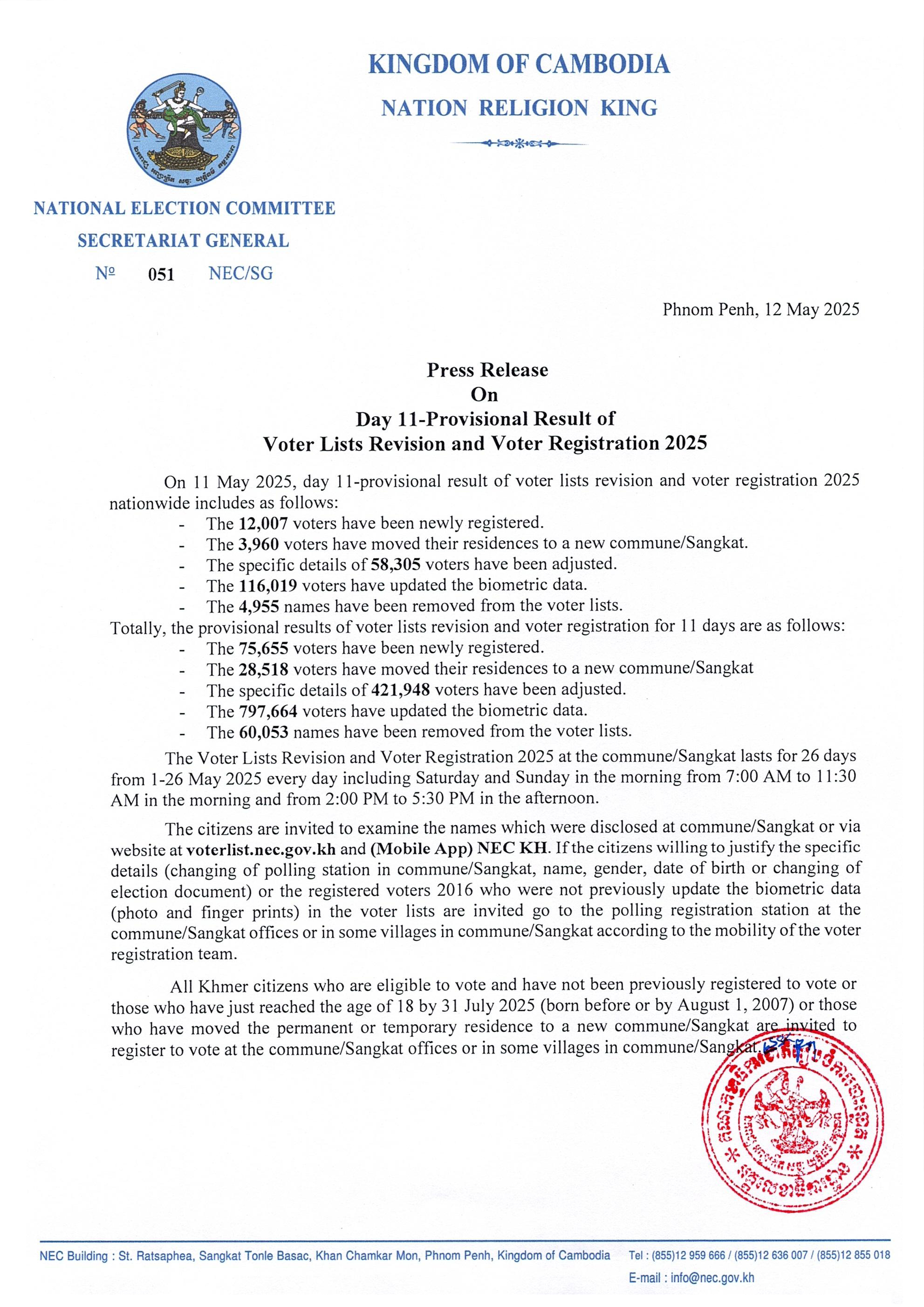 Press Release On Day 11-Provisional Result of Voter Lists Revision and Voter Registration 2025