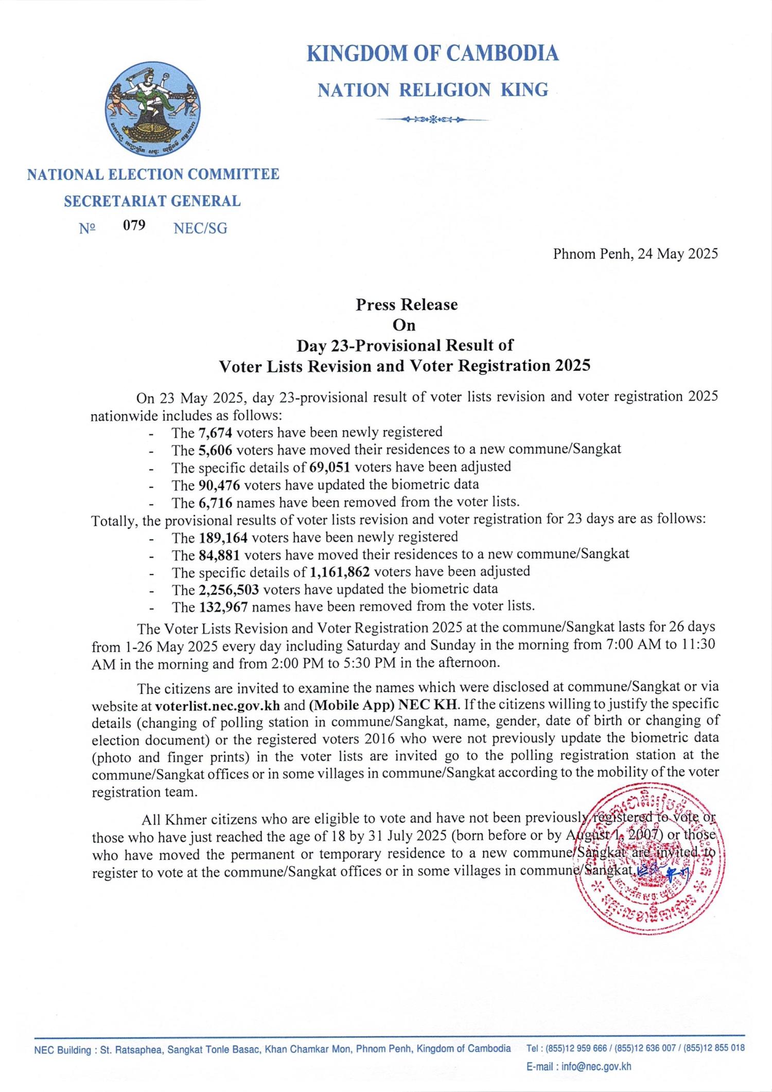 Press Release On Day 23-Provisional Result of Voter Lists Revision and Voter Registration 2025
