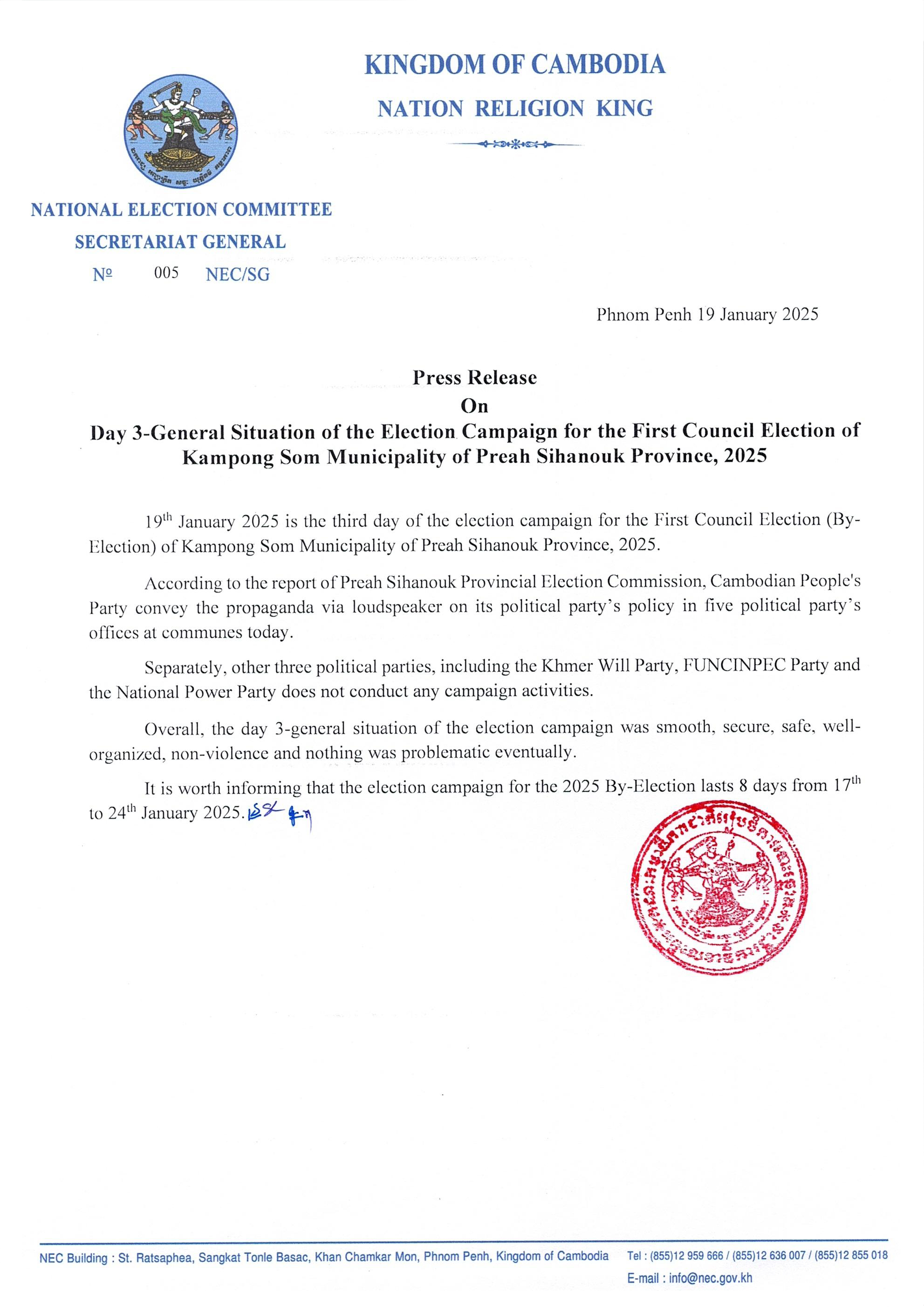 Press Release On Day 3-General Situation of the Election Campaign for the First Council Election of Kampong Som Municipality of Preah Sihanouk Province, 2025