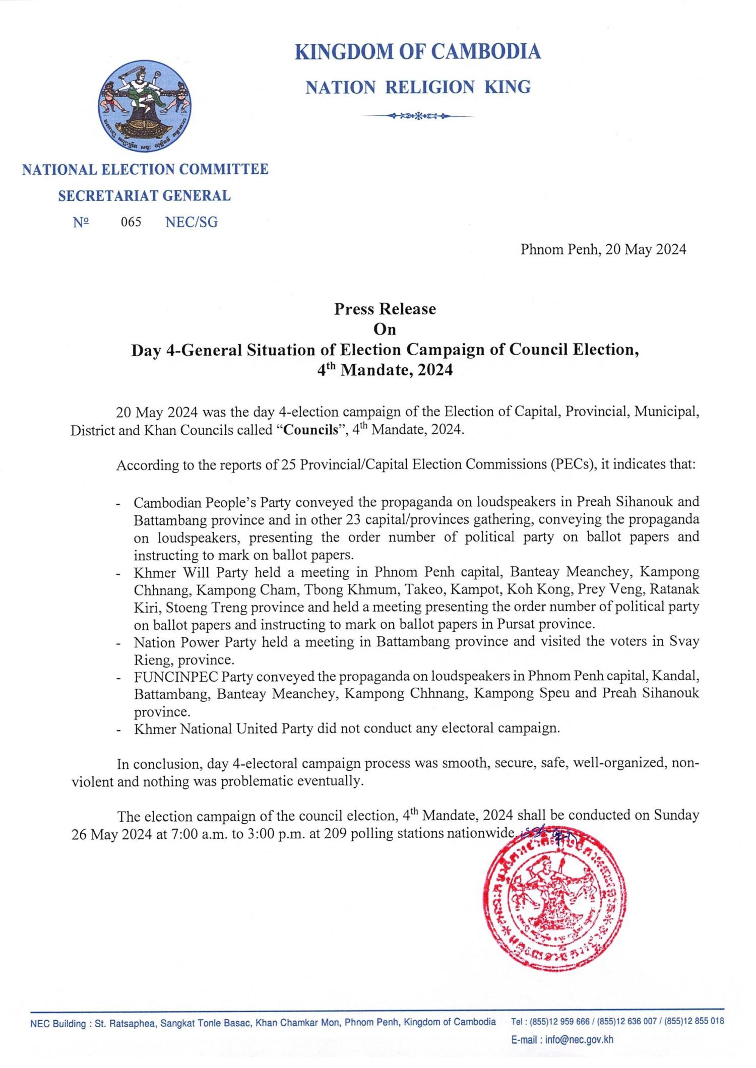 Press Release On Day 4-General Situation of Election Campaign of Council Election, 4th Mandate, 2024