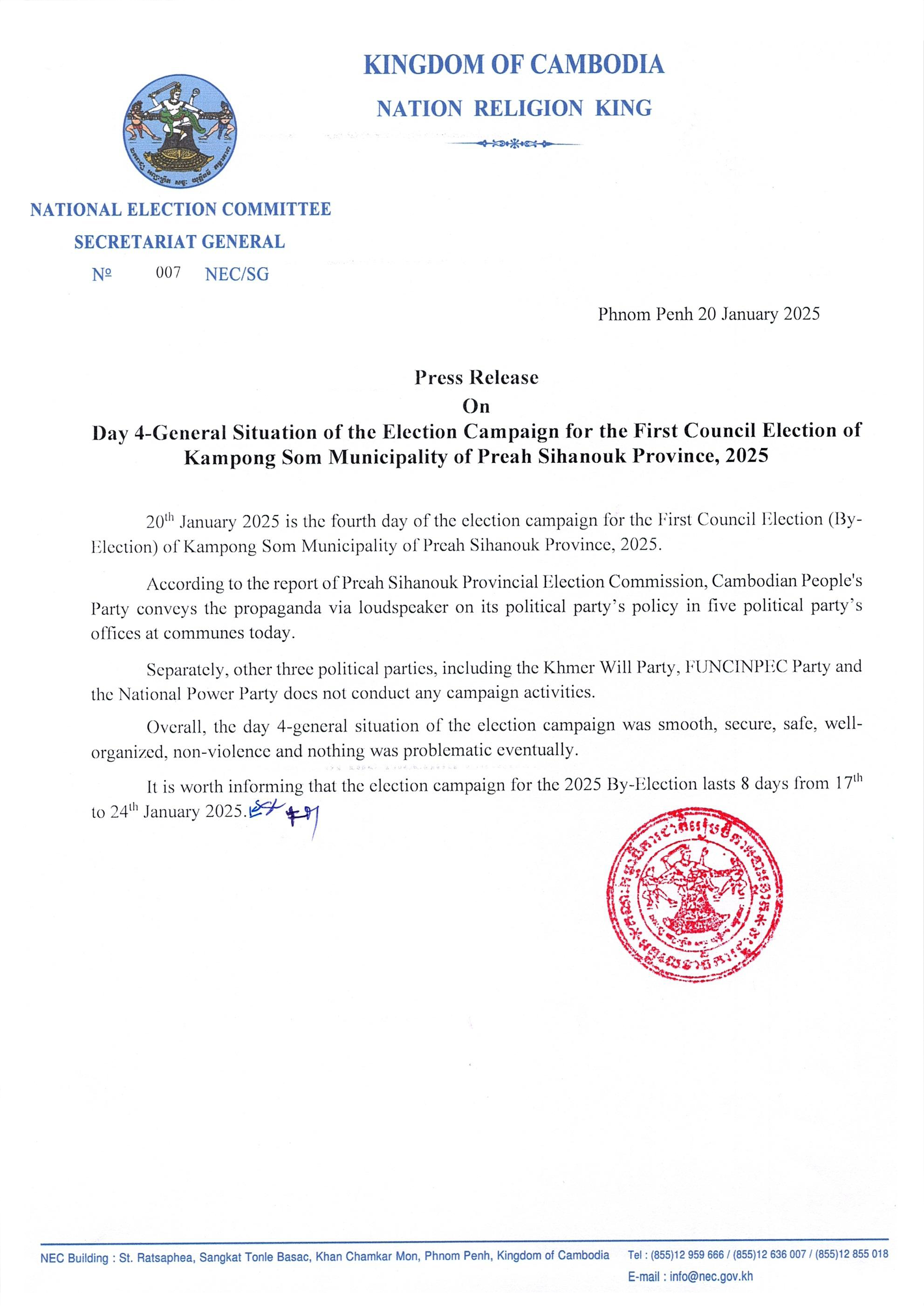 Press Release On Day 4-General Situation of the Election Campaign for the First Council Election of Kampong Som Municipality of Preah Sihanouk Province, 2025