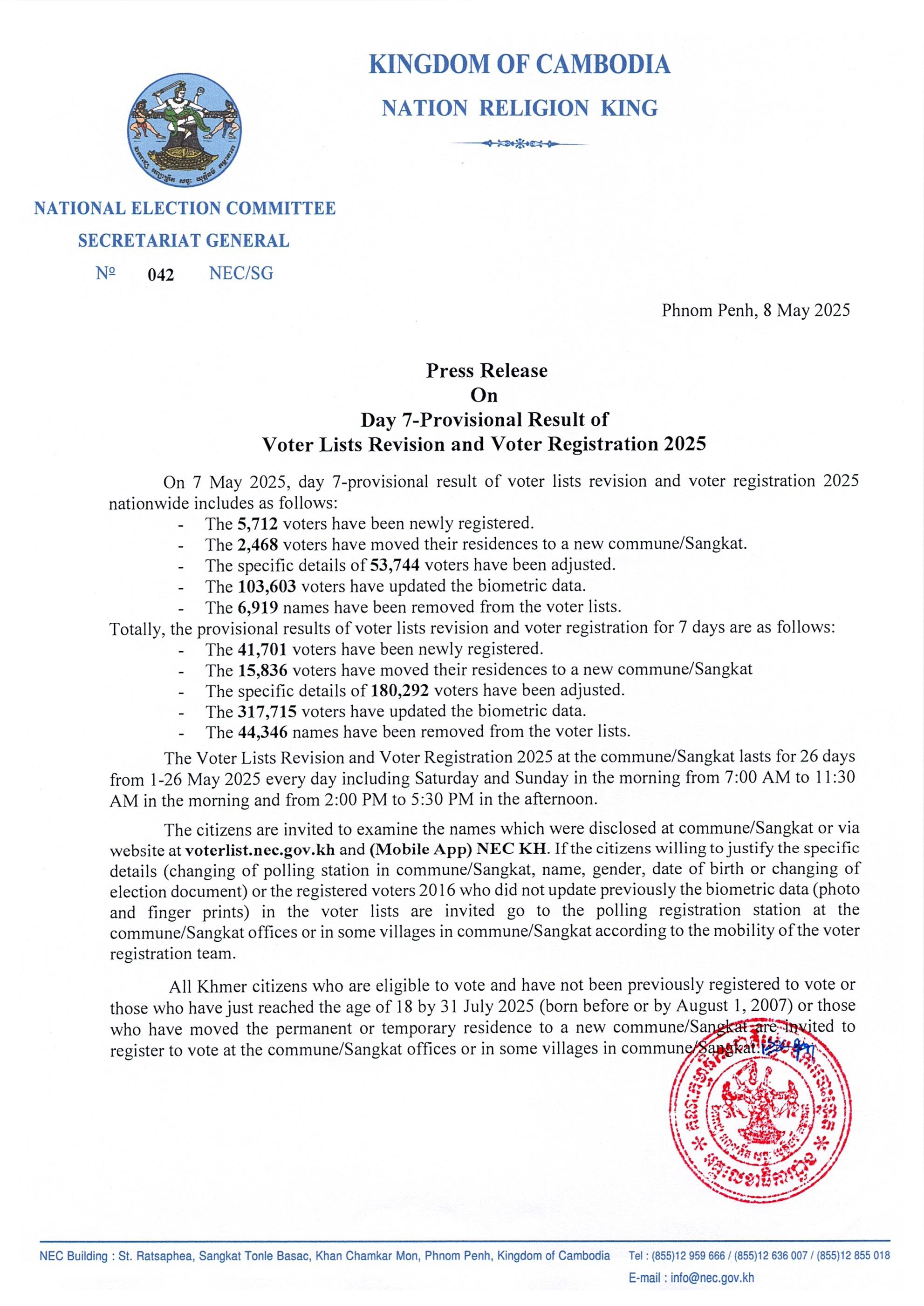 Press Release On Day 7-Provisional Result of Voter Lists Revision and Voter Registration 2025