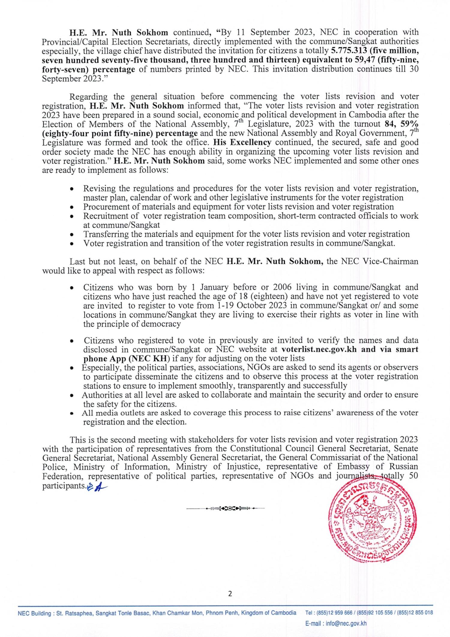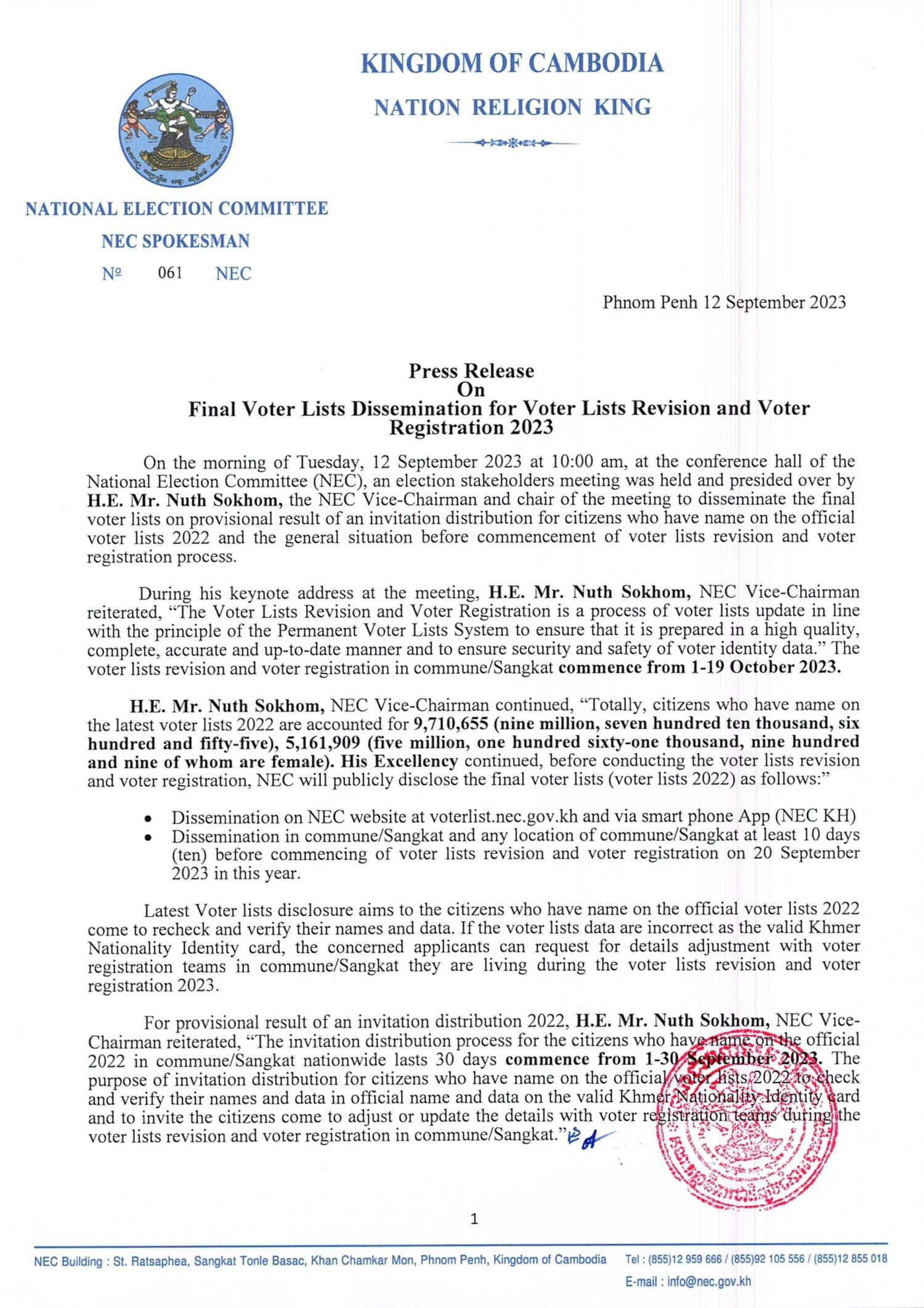 Press Release On Final Voter Lists Dissemination for Voter Lists Revision and Voter Registration 2023