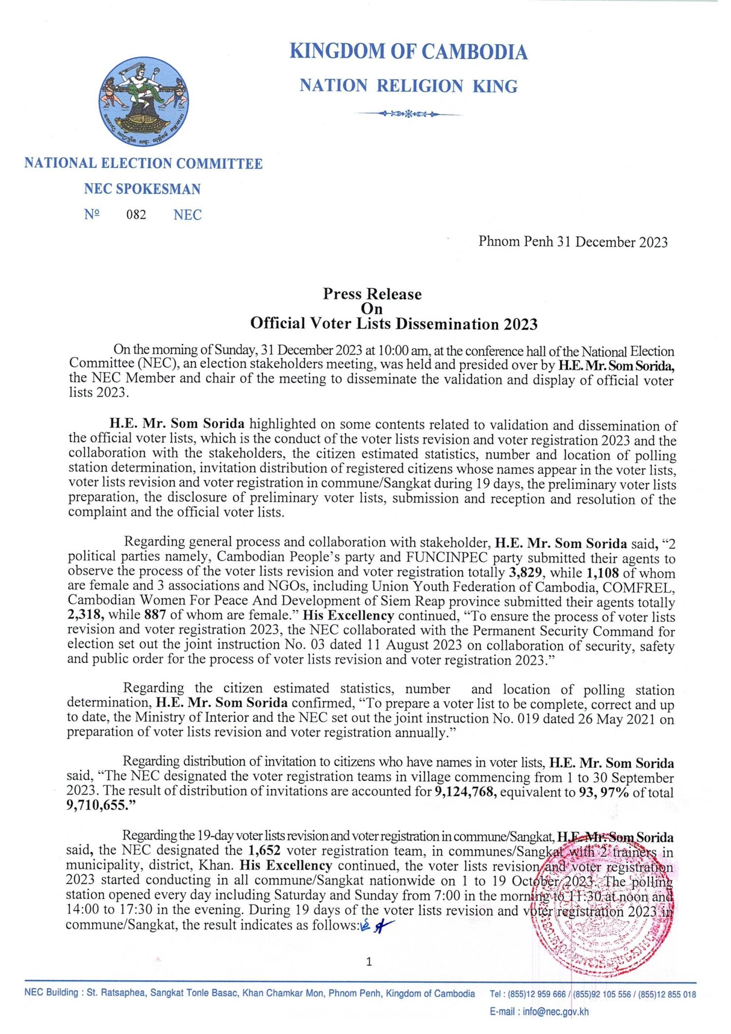 Press Release On Official Voter Lists Dissemination 2023
