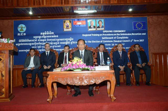 រូបភាពសកម្មភាព កម្មវិធីបើកវគ្គបណ្តុះបណ្តាលមន្ត្រីគណៈកម្មការរៀបចំការបោះឆ្នោតតាមតំបន់អំពី នីតិវិធីនៃការដាក់ ការទទួល និងការដោះស្រាយបណ្តឹងពាក់ព័ន្ធនឹងការបោះឆ្នោតជ្រើសរើសក្រុមប្រឹក្សាឃុំ សង្កាត់ អាណត្តិទី៤ ឆ្នាំ២០១៧ នាថ្ងៃទី ២៩ ខែមេសា ឆ្នាំ២០១៧ នៅខេត្តក្រចេះ។