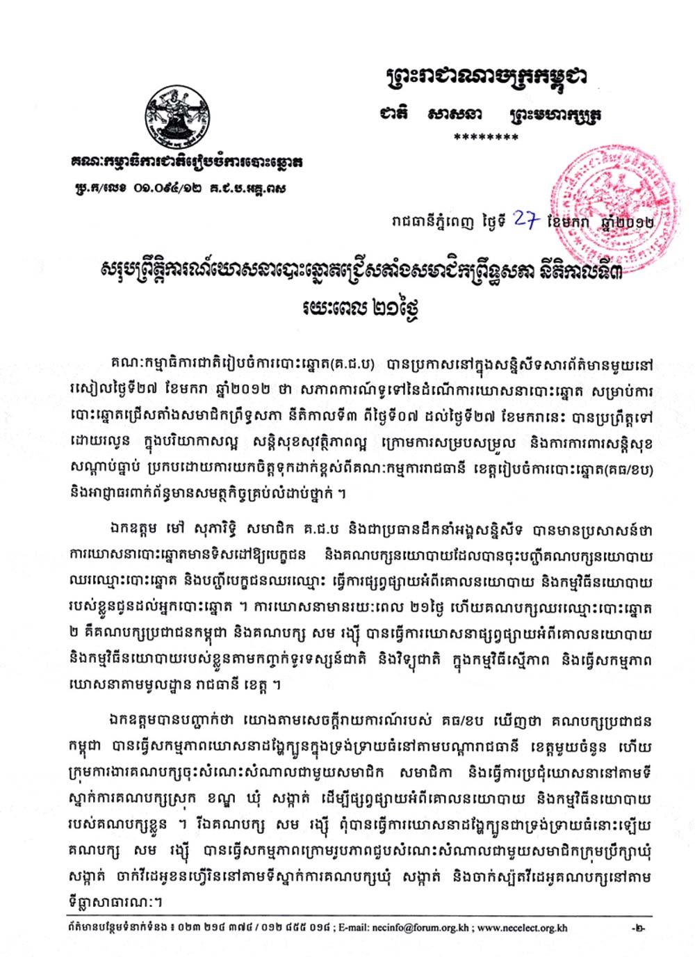 សរុបព្រឹត្តិការណ៍ឃោសនាបោះឆ្នោតជ្រើសតាំងសមាជិកព្រឹទ្ធសភា នីតិកាលទី៣ រយៈពេល ២១ថ្ងៃ