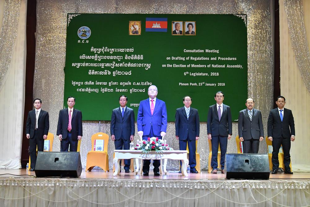 ពិធីបើកកិច្ចប្រជុំពិគ្រោះយោបល់លើសេចក្តីព្រាងបទបញ្ជា និងនីតិវិធី សម្រាប់ការបោះឆ្នោតជ្រើសតាំងតំណាងរាស្ត្រ នីតិកាលទី៦ ឆ្នាំ២០១៨ នាថ្ងៃទី២៣ ខែមករា ឆ្នាំ២០១៨ នៅភោជនីយដ្ឋានទន្លេបាសាក់២ រាជធានីភ្នំពេញ