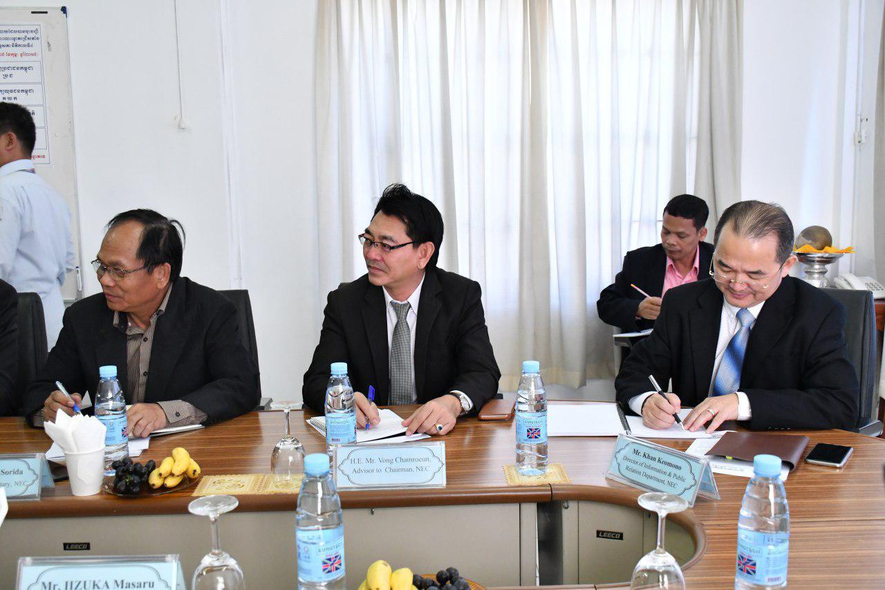 ជំនួបពិភាក្សាការងាររវាង គ.ជ.ប ដឹកនាំដោយ ឯកឧត្តម ស៊ិក ប៊ុនហុក ប្រធាន គ.ជ.ប ជាមួយនឹង ឯកឧត្តម យូគីអូ សៃតា (Yukio Saita) អគ្គនាយកនៃអគ្គនាយកដ្ឋានកិច្ចការអាស៊ី-អាគ្នេយ៍ នៃក្រសួងការបរទេសជប៉ុន នាថ្ងៃទី០៩ ខែមេសា ឆ្នាំ២០១៨ វេលាម៉ោង ៣.៣០ រសៀល នៅសាលប្រជុំ គ.ជ.ប