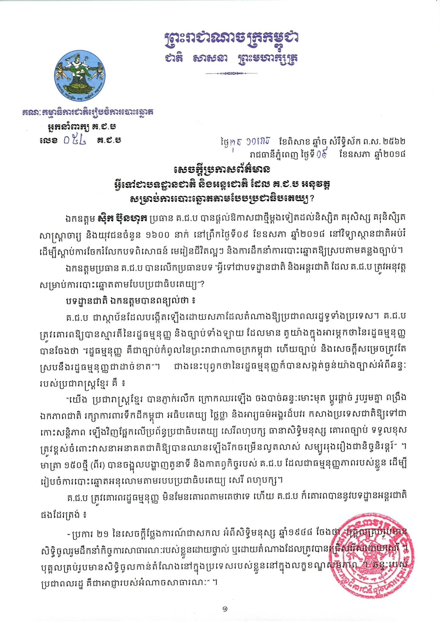សេចក្តីប្រកាសព័ត៌មាន លេខ ០៥៤ ៖ អ្វីទៅជាបទដ្ឋានជាតិ និងអន្តរជាតិ ដែល គ.ជ.ប អនុវត្តសម្រាប់ការបោះឆ្នោតតាមបែបប្រជាធិបតេយ្យ?