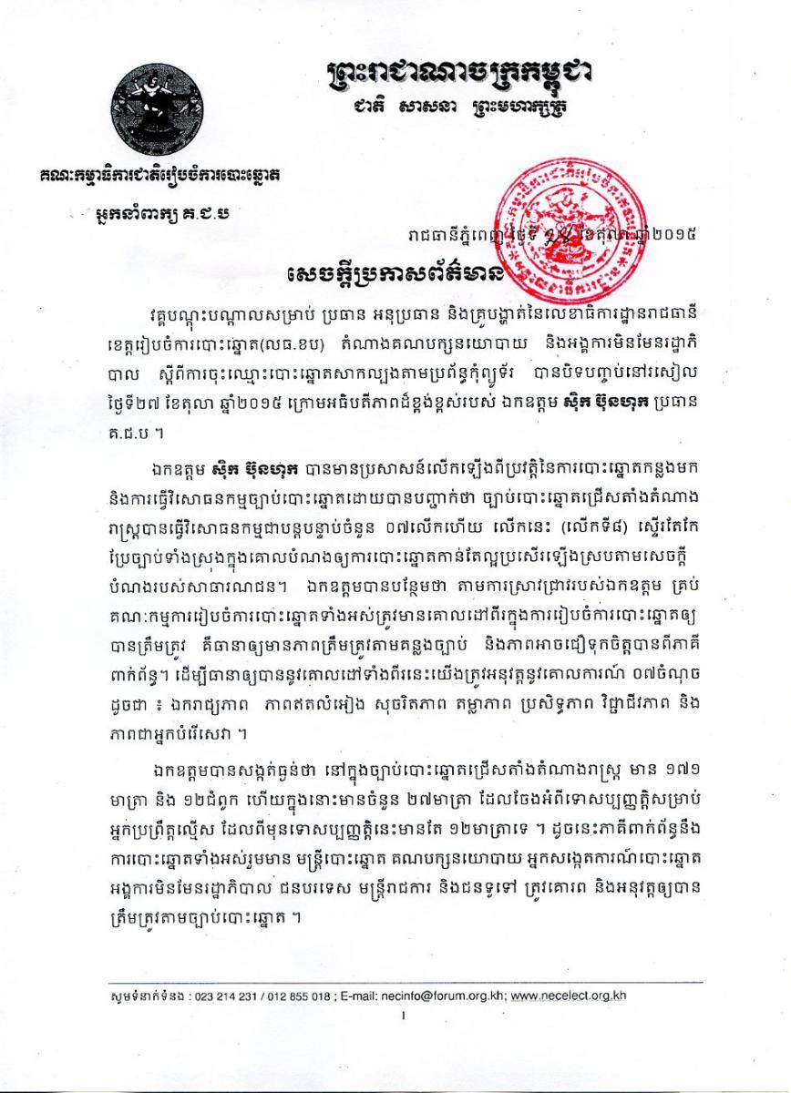 សេចក្ដីប្រកាសព័ត៌មាន