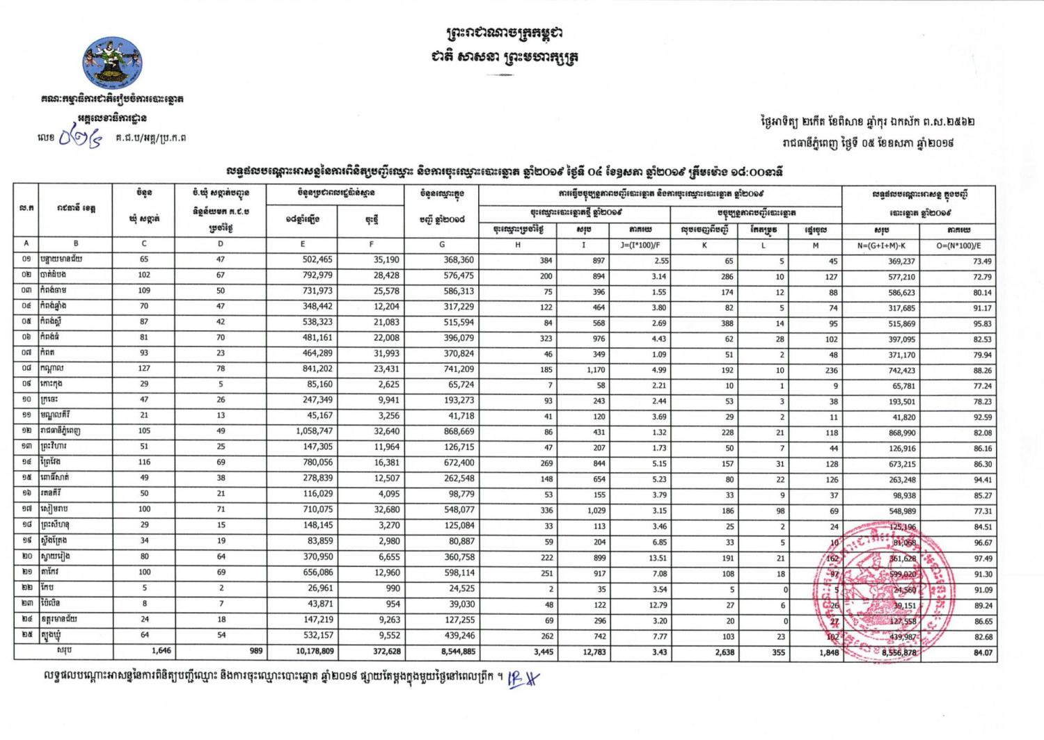 លទ្ធផលបណ្ដោះអាសន្ននៃការពិនិត្យបញ្ជីឈ្មោះ និងការចុះឈ្មោះបោះឆ្នោត ឆ្នាំ២០១៩ ថ្ងៃទី០៤ ខែឧសភា ឆ្នាំ២០១៩ ត្រឹមម៉ោង ១៨:០០នាទី