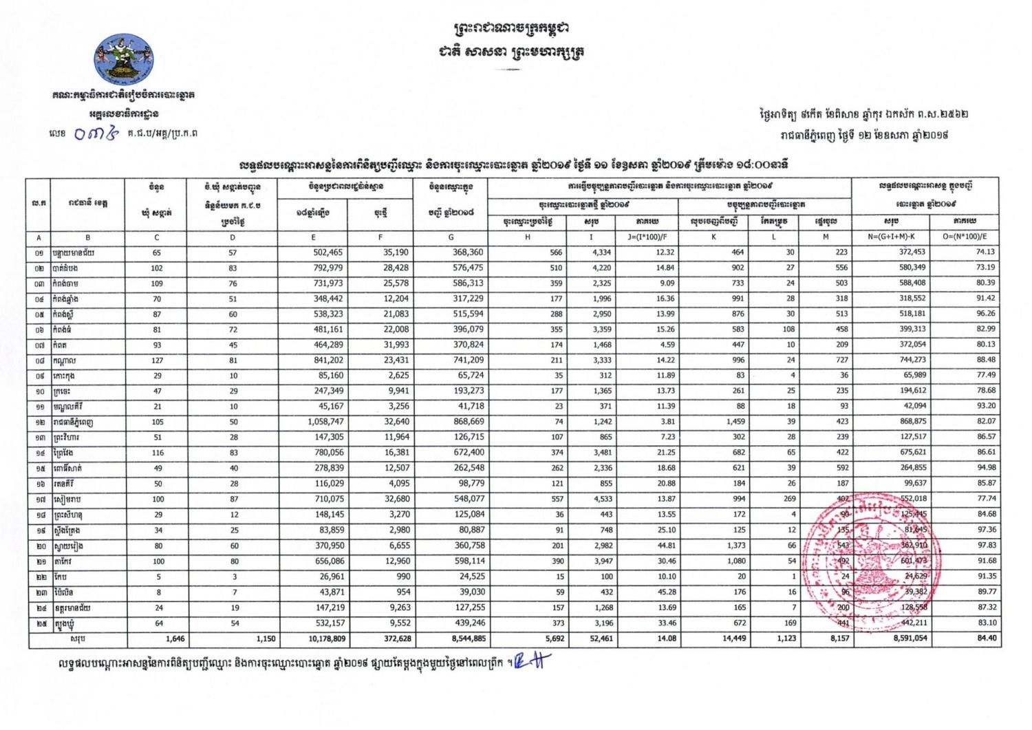 លទ្ធផលបណ្ដោះអាសន្ននៃការពិនិត្យបញ្ជីឈ្មោះ និងការចុះឈ្មោះបោះឆ្នោត ឆ្នាំ២០១៩ ថ្ងៃទី១១ ខែឧសភា ឆ្នាំ២០១៩ ត្រឹមម៉ោង ១៨:០០នាទី