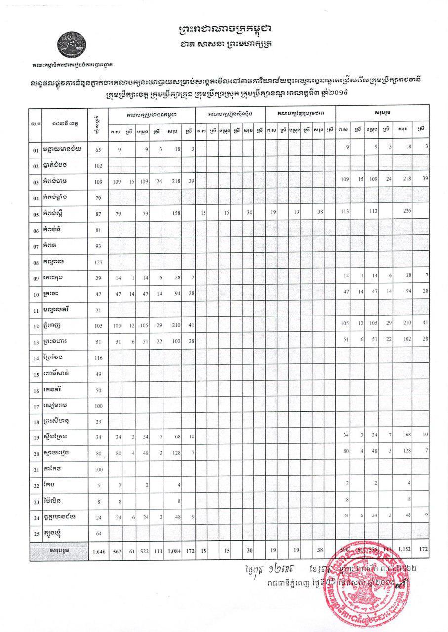 លទ្ធផលផ្លូវការចំនួនភ្នាក់ងារគណបក្សនយោបាយសម្រាប់សង្កេតមើលនៅតាមការិយាល័យចុះឈ្មោះបោះឆ្នោតជ្រើសរើសក្រុមប្រឹក្សា រាជធានី ខេត្ត ក្រុង ស្រុក ខណ្ឌ អាណត្តិទី ៣ ឆ្នាំ២០១៩
