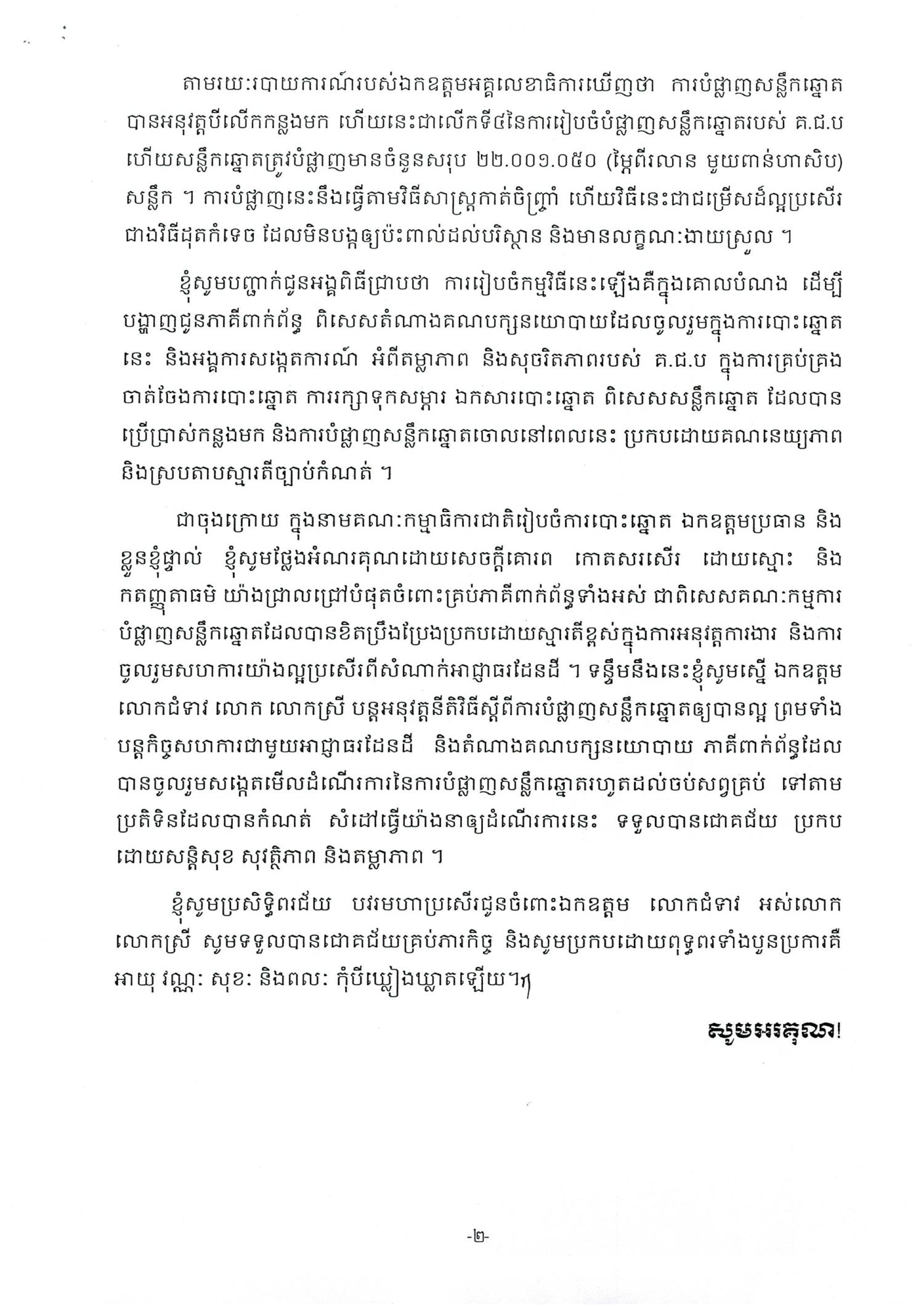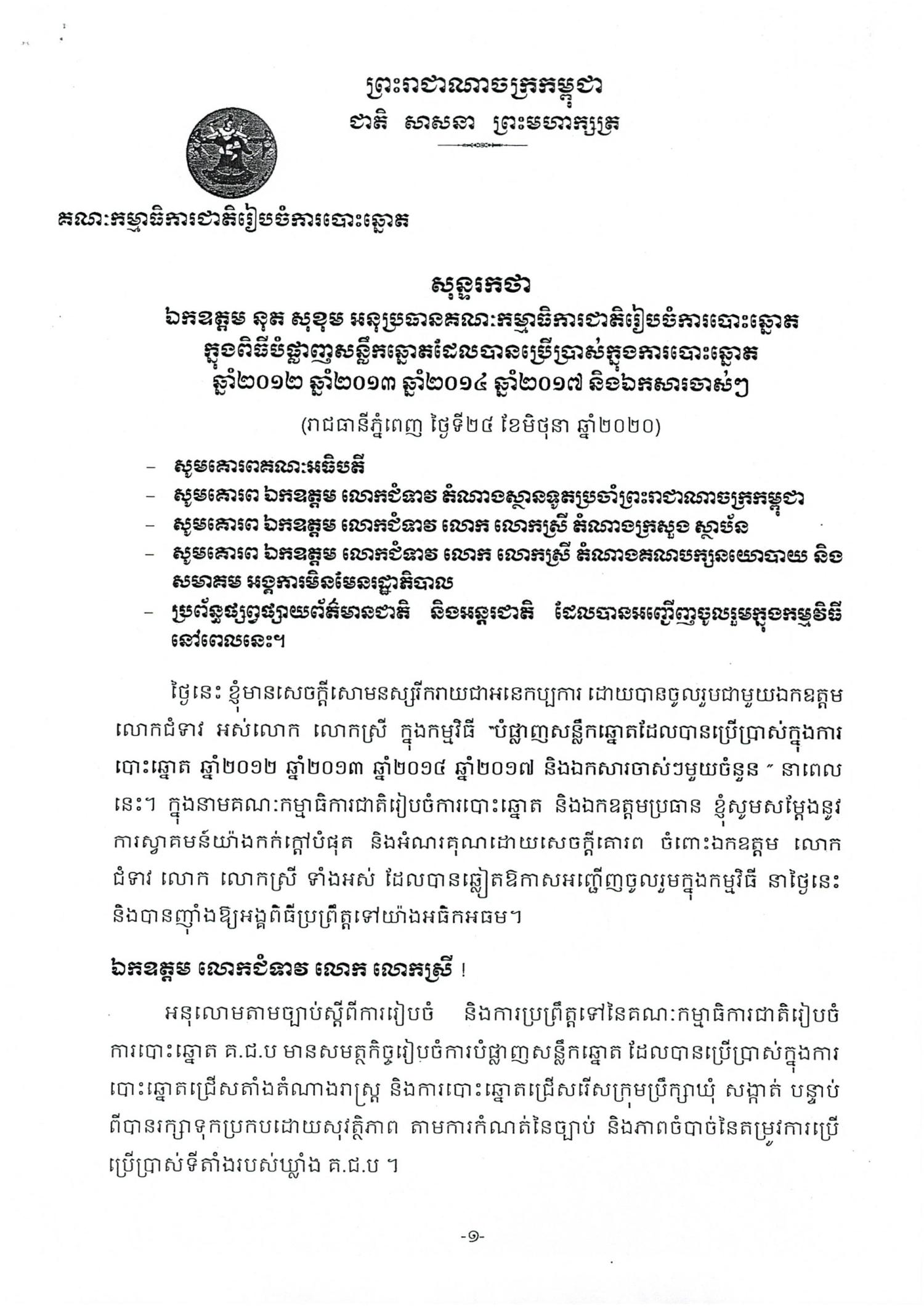 សុន្ទរកថា ឯកឧត្តម នុត សុខុម អនុប្រធាន គ.ជ.ប ក្នុងពិធីបំផ្លាញសន្លឹកឆ្នោតដែលបានប្រើប្រាស់ក្នុងការបោះឆ្នោត ឆ្នាំ២០១២ ឆ្នាំ២០១៣ ឆ្នាំ២០១៤ និងឆ្នាំ២០១៧