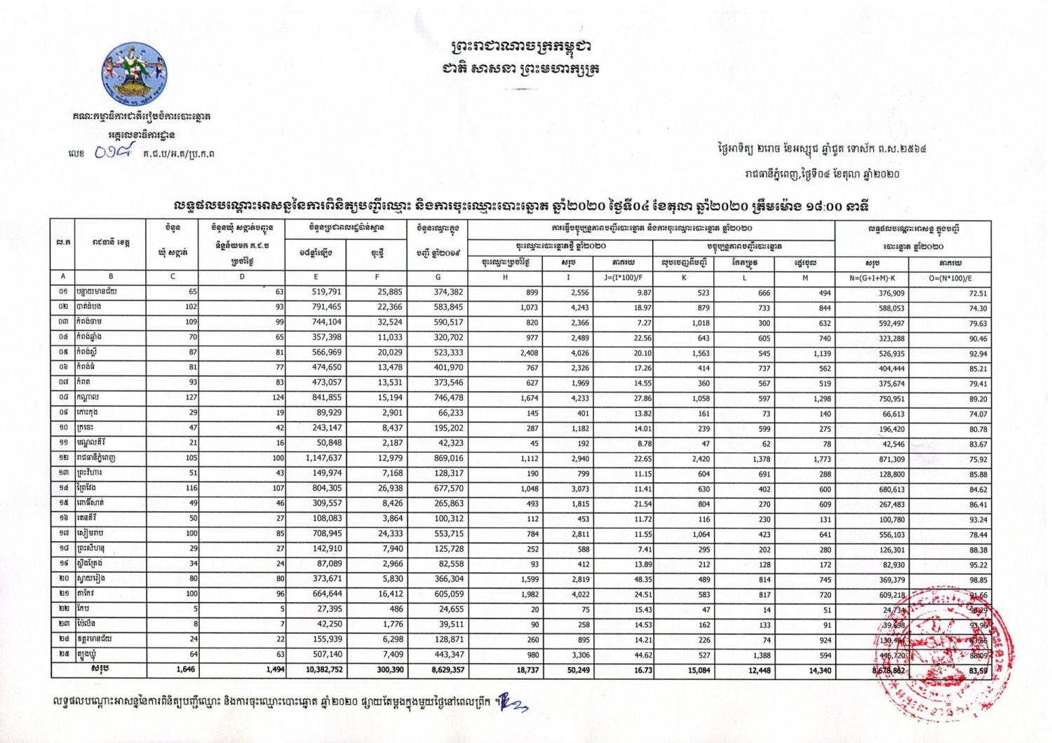 លទ្ធផលបណ្ដោះអាសន្ននៃការពិនិត្យបញ្ជីឈ្មោះ និងការចុះឈ្មោះបោះឆ្នោត ឆ្នាំ២០២០ ថ្ងៃទី៤ ខែតុលា ឆ្នាំ២០២០ គិតត្រឹមម៉ោង ១៨:០០ នាទី