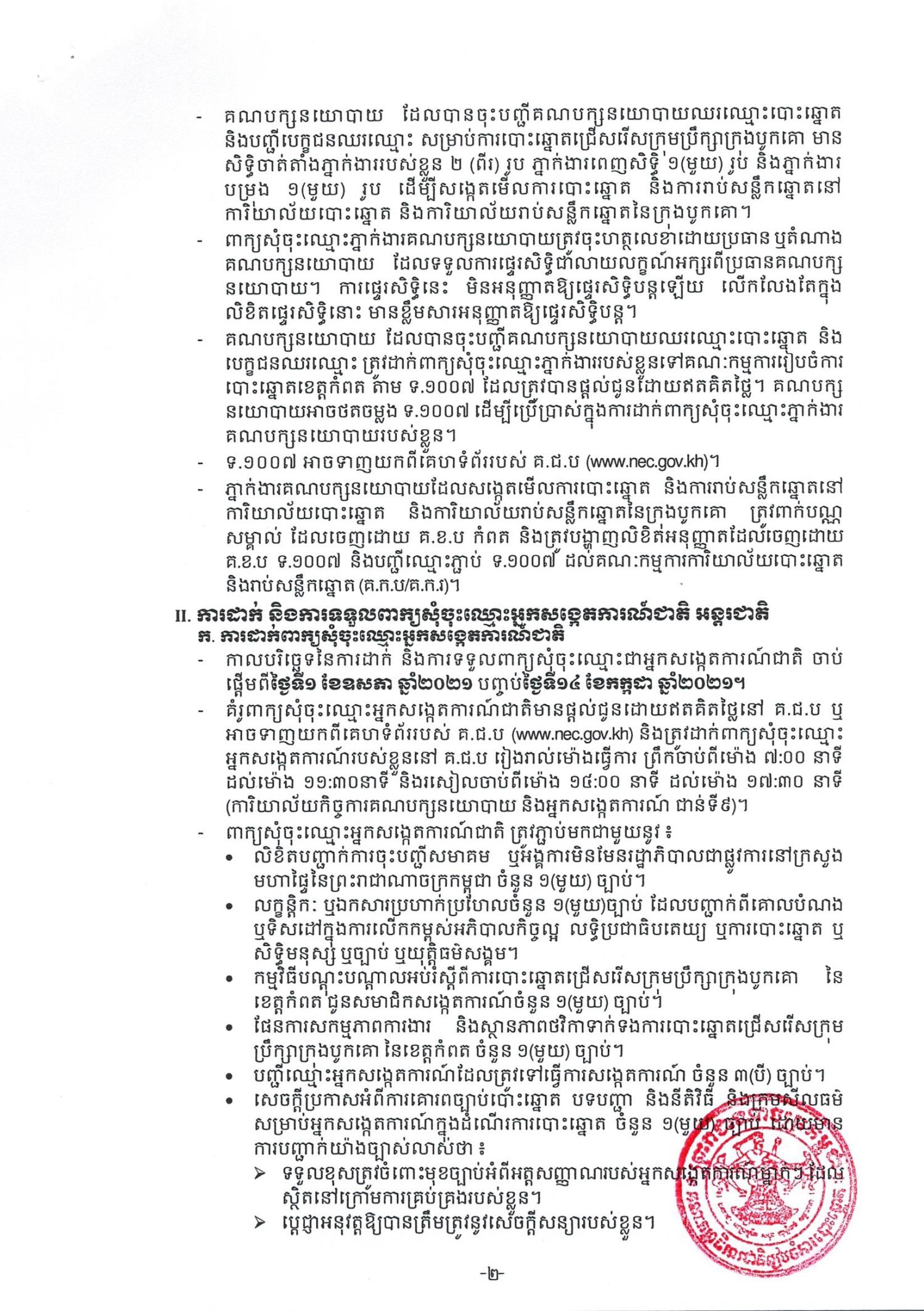 សេចក្ដីជូនដំណឹង លេខ ០១៦ គ.ជ.ប ស.ជ.ណ ស្ដីពីការដាក់ និងការទទួលពាក្យសុំចុះឈ្មោះភ្នាក់ងារគណបក្សនយោបាយ អ្នកសង្កេតការណ៍ជាតិ និងអន្តរជាតិ សម្រាប់ការបោះឆ្នោតលើកទី១ ដើម្បីជ្រើសរើសក្រុមប្រឹក្សាក្រុងបូកគោ នៃខេត្តកំពត ឆ្នាំ២០២១