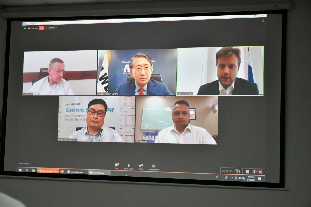 សិក្ខាសាលាតាមប្រព័ន្ធវីដេអូសន្និសីទ (តាមកម្មវិធី ZOOM ) ស្ដីពីការបោះឆ្នោត និងបច្ចេកវិទ្យាក្នុងដំណើរការបោះឆ្នោត ដឹកនាំដោយ ឯកឧត្ដម ម៉ុក ដារ៉ា អគ្គលេខាធិការរង គ.ជ.ប នារសៀល ថ្ងៃទី៣០ ខែមិថុនា ឆ្នាំ២០២១ នៅទីស្ដីការ គ.ជ.ប