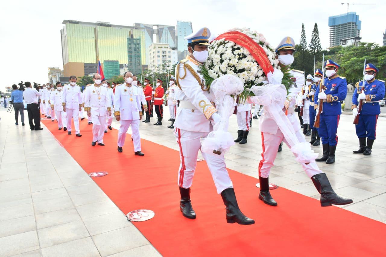 រូបភាពសកម្មភាព ឯកឧត្ដម ប្រាជ្ញ ចន្ទ ប្រធាន គ.ជ.ប បានដឹកនាំគណៈប្រតិភូ គ.ជ.ប ចូលរួមថ្វាយកម្រងផ្កាគោរព ព្រះវិញ្ញាណក្ខន្ធ ព្រះករុណា សម្តេចព្រះនរោត្តម សីហនុ ព្រះមហាវីរក្សត្រ ព្រះវររាជបិតា ឯករាជ្យបូរណភាពទឹកដី និងឯកភាពជាតិខ្មែរ ព្រះបរមរតនកោដ្ឋ នាព្រឹកថ្ងៃសុក្រ ៩កើត ខែអស្សុជ ឆ្នាំឆ្លូវ ត្រីស័ក ព.ស.២៥៦៥ ត្រូវនឹងថ្ងៃទី១៥ ខែតុលា ឆ្នាំ២០២១។