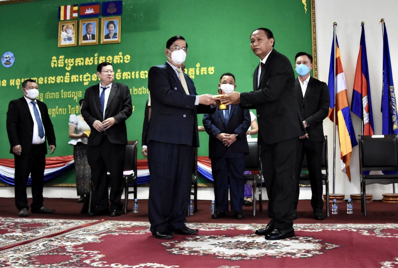 រូបភាពសកម្មភាព ឯកឧត្តម ឌុច សុន សមាជិក គ.ជ.ប អញ្ជើញជាអធិបតី ក្នុងពិធីប្រកាសតែងតាំងប្រធាន អនុប្រធាន លេខាធិការដ្ឋានរៀបចំការបោះឆ្នោត ខេត្តកែប នៅសាលប្រជុំសាលាខេត្តកែប នៅព្រឹកថ្ងៃទី២១ ខែមីនា ឆ្នាំ២០២២ ។