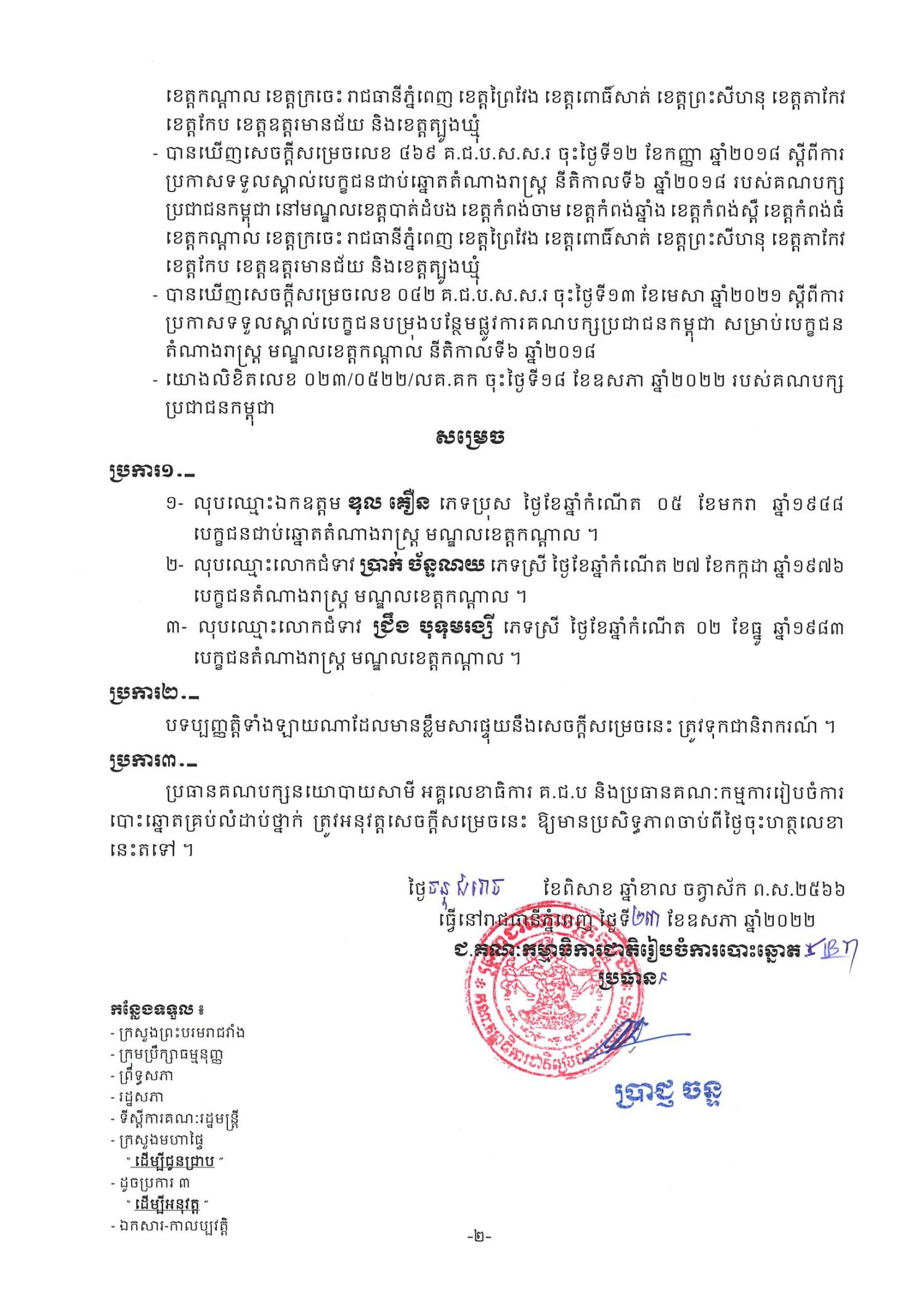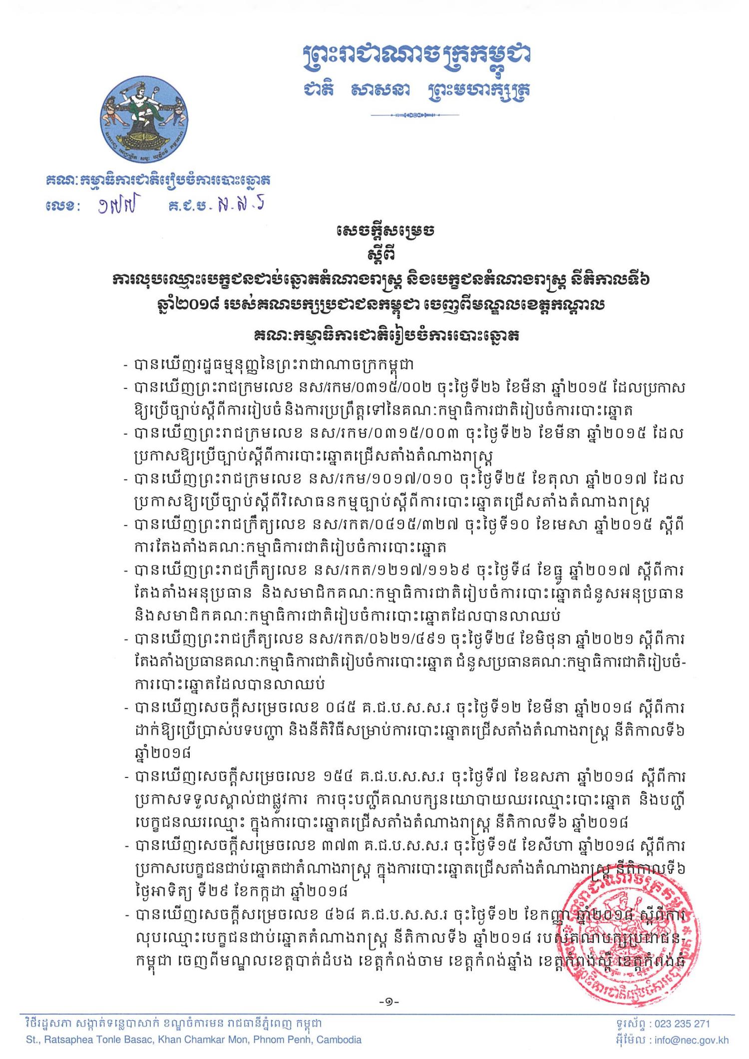 សេចក្ដីសម្រេច លេខ ១៧៧ គ.ជ.ប.ស.ស.រ ស្ដីពីការលុបឈ្មោះបេក្ខជនជាប់ឆ្នោតតំណាងរាស្ត្រ និងបេក្ខជនតំណាងរាស្ត្រ នីតិកាលទី៦ ឆ្នាំ២០១៨ របស់គណបក្សប្រជាជនកម្ពុជា ចេញពីមណ្ឌលខេត្តកណ្ដាល